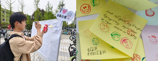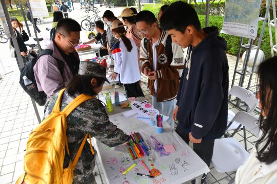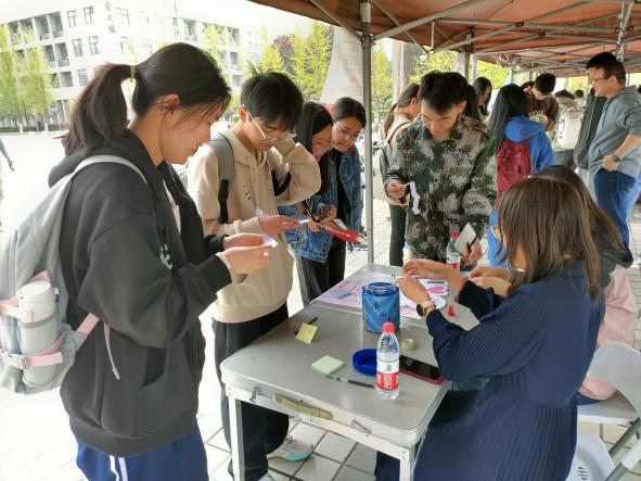 地球科學與工程學院、電子工程學院組織的“以德育心”展臺主題分別為“妙筆騫行”和“時光膠囊”,讓同學們在活動中體驗情緒、認知自我,直面時光流逝,學會珍惜時間。