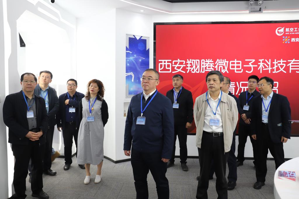 在西安翔騰微電子科技有限公司總經理田澤的陪同下,常江一行參觀了該公司太白園區展廳,詳細聽取了公司發展歷程、核心業務、關鍵技術產品等方面的介紹,并觀摩了智能無人機演示。