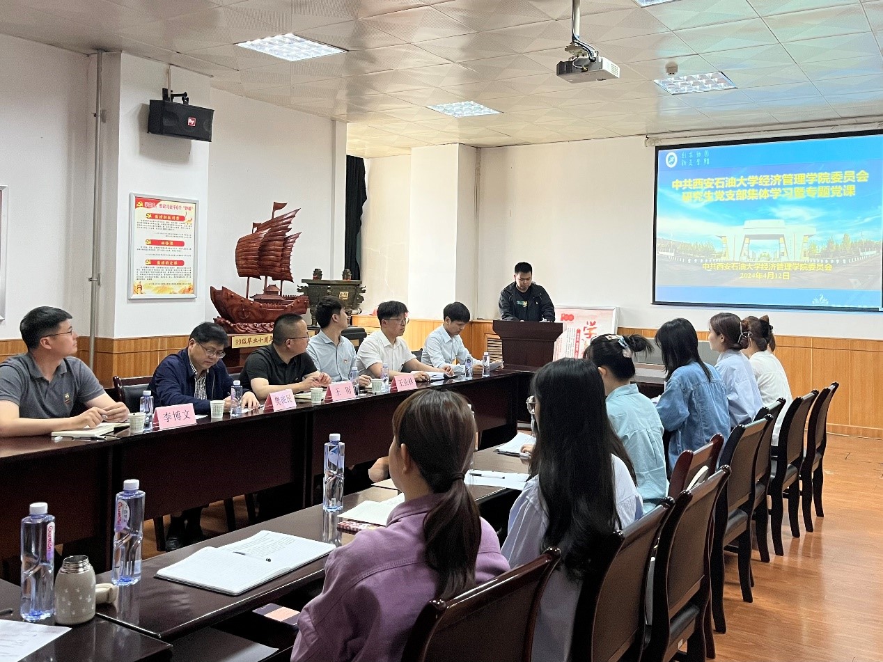 4月12日,經濟管理學院2022級學碩黨支部在雁塔校區東方石油樓1507會議室召開支部黨員大會,總會計師樊曉民以普通黨員身份參加支部學習,與支部黨員同志一起交流,并講授專題黨課。