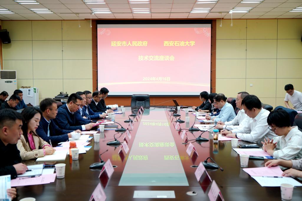 劉濤充分肯定了我校在人才培養、科學研究、科技成果轉化等方面取得的成績和對延安地區經濟發展作出的貢獻,并介紹了近年來延安市在科技創新、成果轉化方面的取得的成績和下一步持續推進成果轉化的工作思路。他指出,此次來到西安石油大學開展合作交流,是貫徹落實市委六屆六次全會部署和市委主要領導的指示要求,尋求與學校在科技創新方面的更多合作機遇。他希望,在加強產業轉型合作、聯合開展技術攻關、促進科技成果轉化、聯合組建創新平臺等方面開展全方位合作,為推動延安市新質生產力發展提供支持。