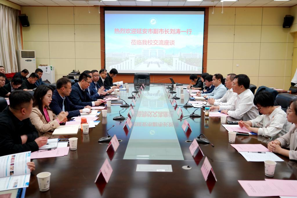座談會上,張榮軍對劉濤一行到訪學校表示熱烈歡迎,對延安市長期以來對學校發展的支持與幫助表示感謝,并介紹了學校的發展歷程和近年來取得的成績。他指出,近年來我校與延安市在科學研究、人才培養、科技成果轉化等方面開展了形式多樣的交流合作,取得了豐碩的成果,也結下了深厚的合作友誼。他希望通過本次交流,進一步夯實雙方的合作基礎,發揮好各自優勢和特色,進一步創新機制、拓寬領域、搭建平臺,深入推進校地校企融合、科教融合、產教融合。他強調,在深化交流合作的新征程上,也非常期待雙方繼續保持密切交流,厚植情誼,共同探討產學研合作的新模式、新路徑,共同為延安市經濟高質量發展提供技術和人才支撐。
