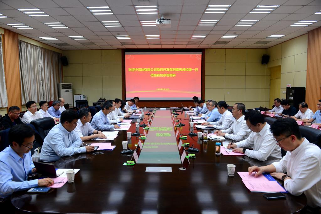 常江代表學校對劉建忠一行到訪我校表示熱烈歡迎,對中國海油及中海油服一直以來給予學校的大力支持和幫助表示感謝。他談到,我校與中國海油建立了深厚的合作情誼,校企合作不僅給雙方帶來了實質性的幫助,也促進了雙方的互相信任和友好往來,我校將繼續與中國海油及中海油服深化合作,探索更多合作的可能性,共同推動科研成果轉化和人才培養工作。