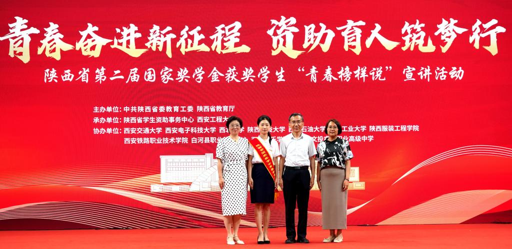 6月13日下午,陜西省第二屆國家獎學金獲獎學生“青春榜樣說”宣講活動在西安工程大學臨潼校區舉行。教育部全國學生資助管理中心副主任涂義才出席活動并致辭。省委教育工委委員、省教育廳副廳長何玉麒出席并講話。