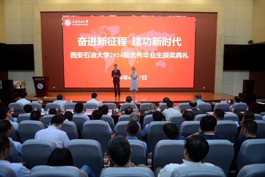 6月17日下午,西安石油大學2024屆優秀畢業生頒獎典禮在鄠邑校區弘石學術報告廳舉辦。學校黨政領導常江、王進富、張木、楊戰社、張榮軍出席頒獎典禮,黨委辦公室(校長辦公室)、黨委組織部、黨委宣傳部、黨委學生工作部、黨委保衛部、團委、教務處、實驗室管理處、研究生院(研究生工作部)、國際教育學院負責人,各院(系)書記、院長(主任)、副書記,全體輔導員及學生代表400余人參加會議。