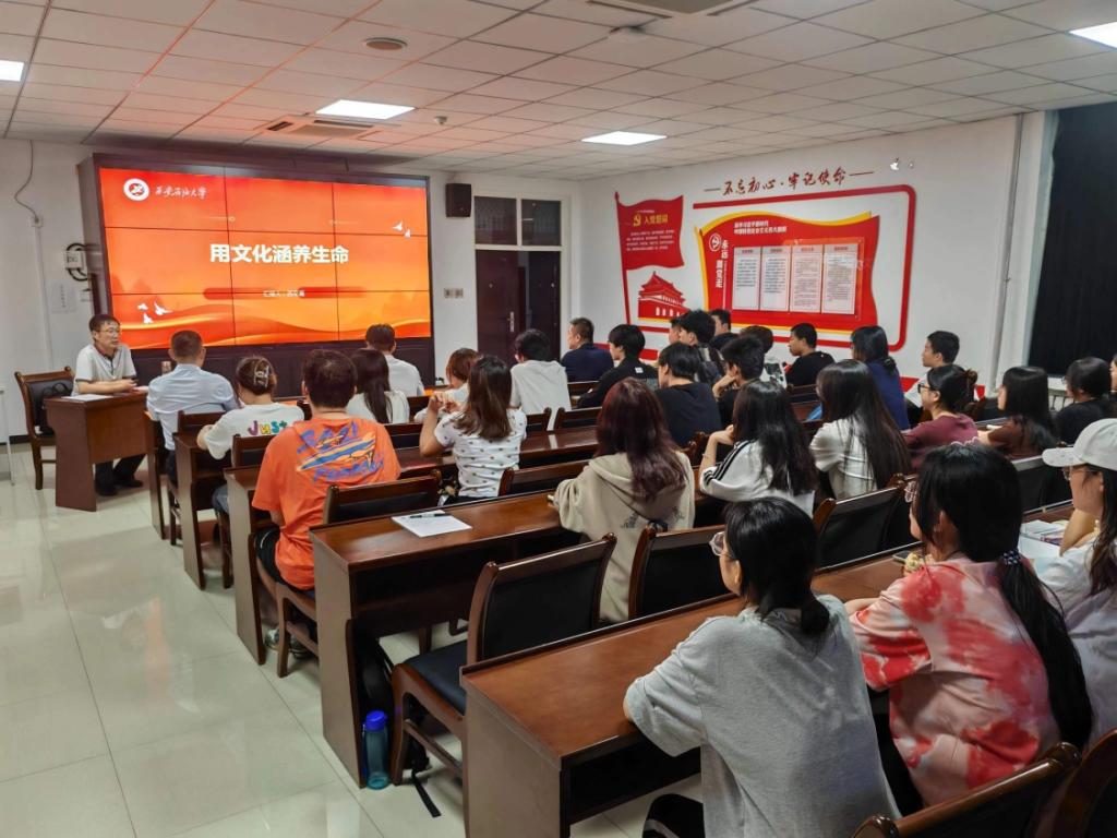 6月17日晚,副校長蘇文甫在鄠邑校區博知樓112會議室為計算機學院學生講授題為《用文化涵養生命》的專題思政課。計算機學院輔導員、學生代表40余人現場聽課。計算機學院黨委書記龐秉謙主持報告會。