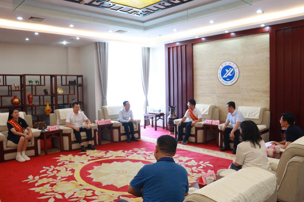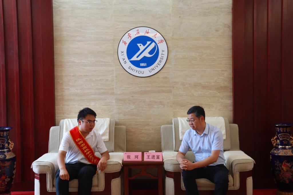 會前,校長王進富親切會見了報告團一行。王進富對5位優秀畢業生代表來校作報告表示歡迎和感謝,對他們扎根基層、報效祖國、服務人民的先進事跡表示贊揚與肯定。他指出,畢業生建功立業先進事跡報告活動的舉辦,就是以先進榜樣為力量,引領廣大學生樹立正確的學習觀、就業觀和人生觀,立志做有理想、敢擔當、能吃苦、肯奮斗的新時代好青年。他表示,學校將以此次分享會為契機,充分挖掘學校優秀校友先進事跡,引導廣大同學向身邊的榜樣和先進看齊,賡續紅色血脈,弘揚鐵人精神,在新時代的廣闊天地綻放青春之花,同時也希望校友張珂(我校石工院2019屆本科畢業生)能夠一如既往地支持母校發展。