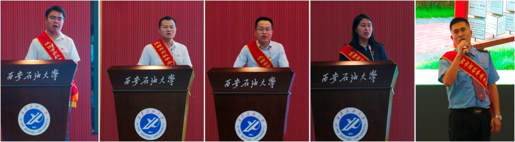 會上,我校石油工程學院2019屆本科畢業生,新疆維吾爾自治區庫車市烏尊鎮人民政府四級主任科員張珂;陜西職業技術學院2019屆畢業生,陜西省彬州市義門鎮人民政府農業農村辦主任任文杰;陜西工業職業技術學院2014屆畢業生,西安凌科檢測科技有限公司總經理周春慧;陜西國防工業職業技術學院2016屆畢業生,陜西省咸陽市格林美化工程有限公司設計師劉逍雪;陜西鐵路工程職業技術學院2015屆畢業生,中國鐵路西安局集團有限公司寶雞車務段青石崖車站站長張鑫,先后分享了他們各自建功立業的先進事跡,并對現場同學們在學習、實習、就業等方面遇到的問題和疑惑進行了交流與解答。