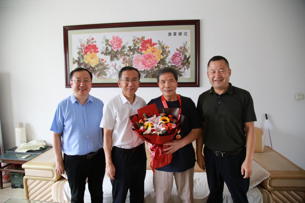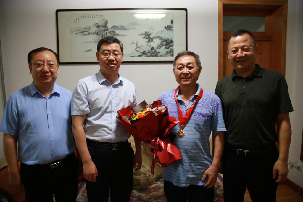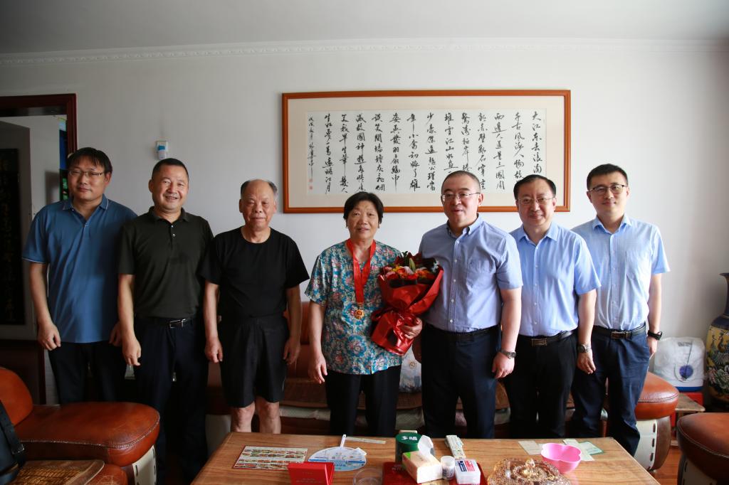 在中國共產黨建黨103周年來臨之際,為弘揚黨的光榮傳統和優良作風,加強黨內關懷、傳遞組織溫暖,6月28日上午,校黨政領導常江、王進富、張木、王輝強、程永清帶隊走訪慰問黨齡達到50周年且表現優秀的在校居住的老黨員,為他們頒發“光榮在黨50年”紀念章,并送上鮮花和慰問品,代表校黨委向老黨員送去黨的關懷和節日的問候。學校黨委辦公室(校長辦公室)、紀檢監察機構、黨委組織部、黨委宣傳部、黨委統戰部、離退休工作處負責人陪同慰問。