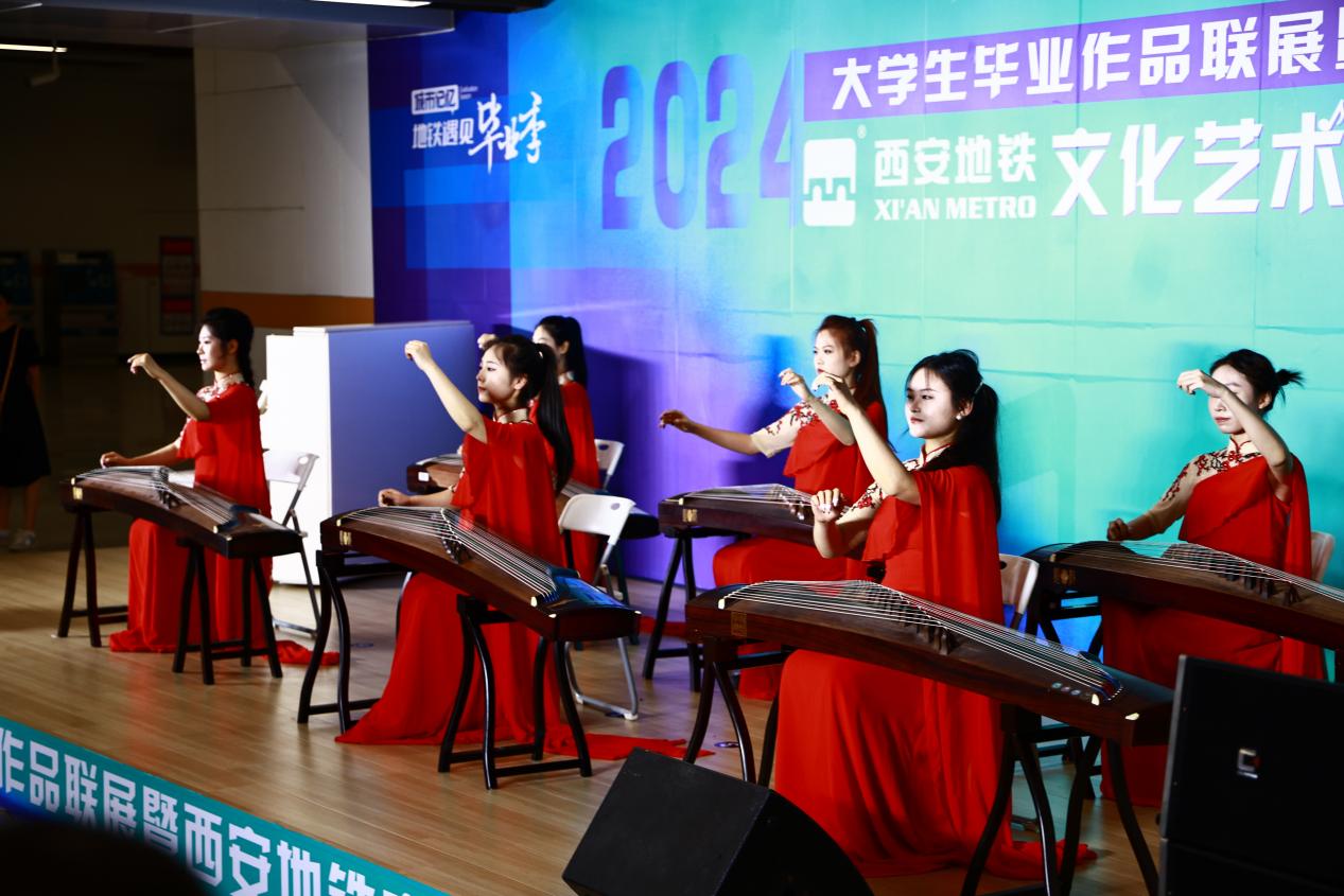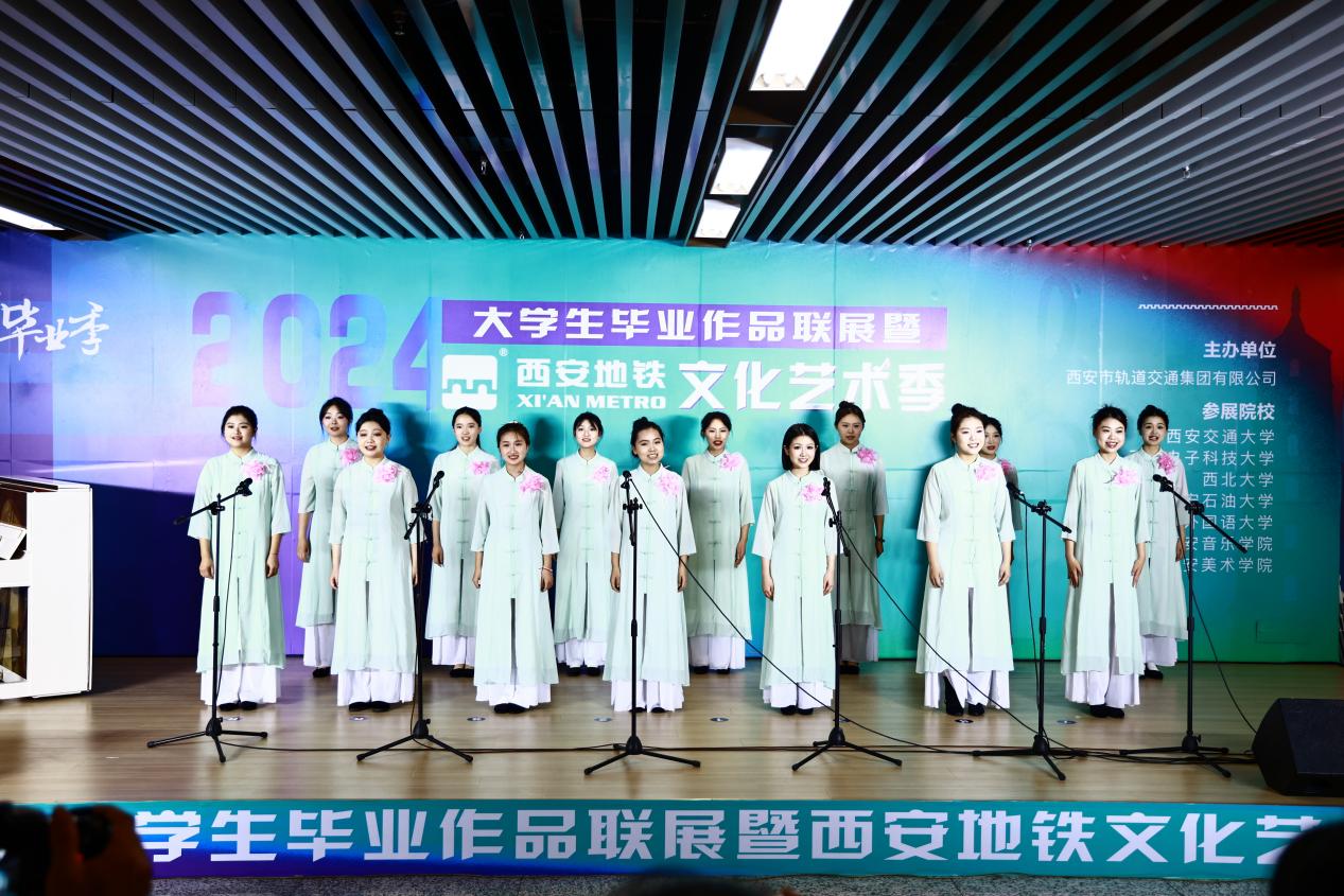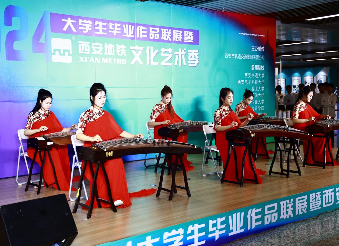 開幕儀式上,來自西安石油大學、西安音樂學院的音樂學子及地鐵青年員工為來往市民帶來了一場別開生面的藝術展演。演出類型包括民樂演奏、民歌演唱、合唱、相聲等,活動吸引了過往市民游客駐足觀看,現場歡呼聲、掌聲不絕于耳。學子們用悅耳的古箏齊奏、激昂的民歌和熱情的舞蹈等10余個節目,表達了對青春的深刻理解和接續奮斗的遠大抱負,讓大家在出行中感受當代大學生積極向上的精神風貌和無限活力,體驗屬于西安畢業季的浪漫。
