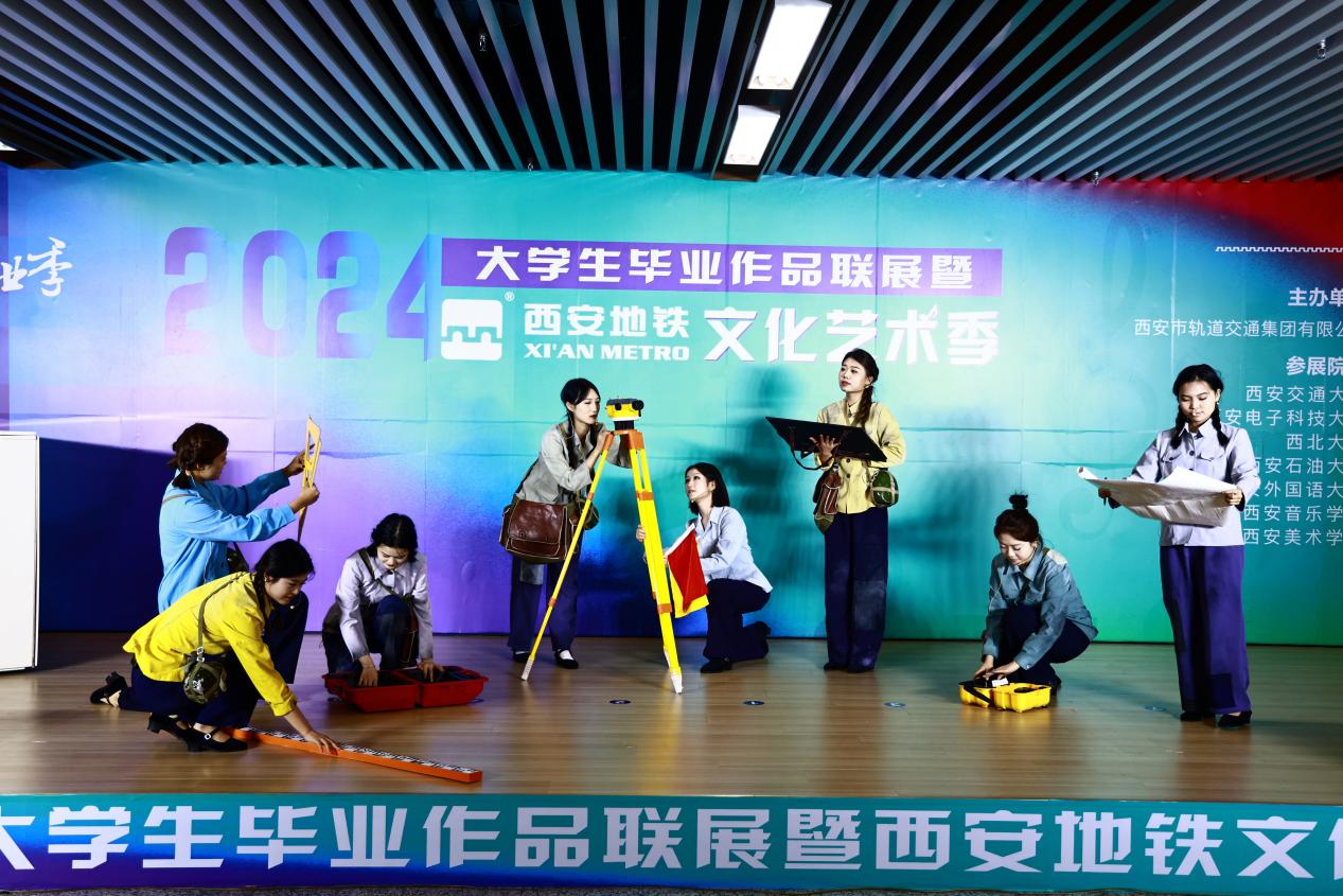 在大學生畢業作品展區,由西安交通大學、西安電子科技大學、西北大學、西安石油大學、西安外國語大學、西安美術學院、西安音樂學院等高校設計的140余件(組)優秀畢業作品也在車站同步展出。其中,既包括實體的繪畫作品、雕塑作品、文創作品、文藝展演,也有數字藝術、機器人、無人機通信技術等科技作品。大學生們的優秀作品先后在地鐵西安站、行政中心站、鐘樓站三個車站驚艷亮相。