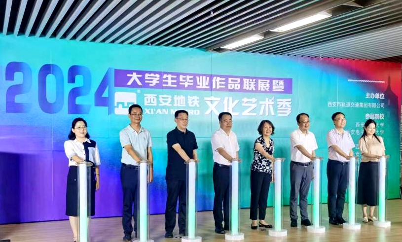 6月30日下午,西安市軌道交通集團“城市記憶·地鐵遇見畢業季”大學生畢業作品展暨2024西安地鐵文化季活動在地鐵西安站“樂潤長安”音樂角正式啟幕。我校副校長趙健應邀出席開幕式活動和啟動儀式,音樂系、人文學院師生40余人參與和見證了開幕式活動。