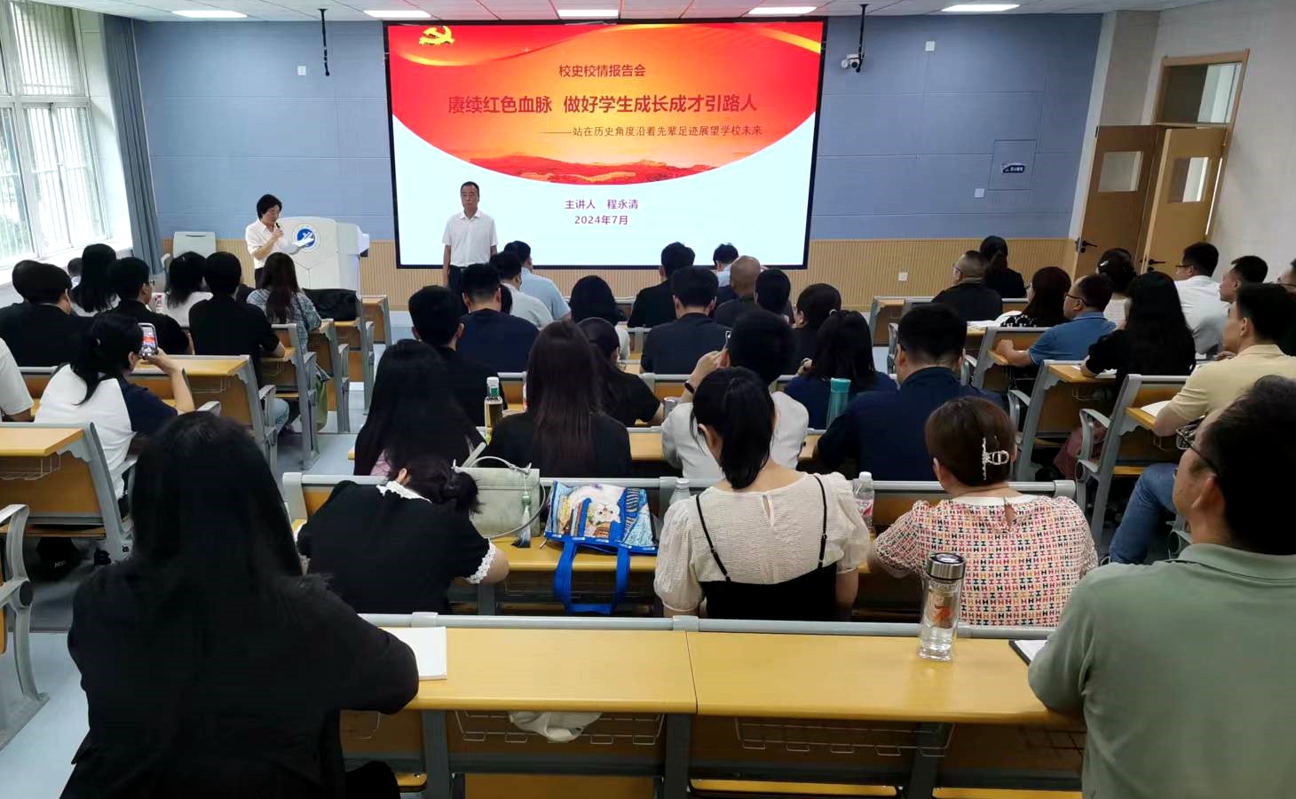 7月5日下午,校黨委副書記程永清作題為《賡續紅色血脈 做好學生成長成才引路人》專題培訓,全體輔導員參訓學習。