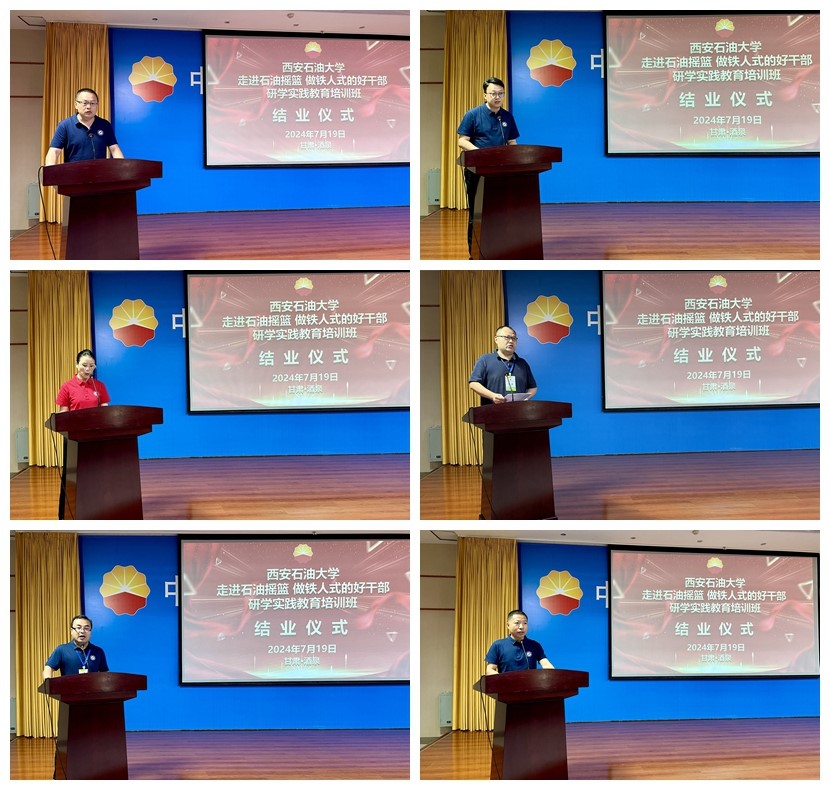 7月19日上午,在培訓班結業儀式上,6名小組代表趙子龍、黨偉、何云、范崢、吳松、茍毅飛圍繞本次培訓主題進行了交流發言,玉門油田培訓中心領導為學員代表頒發結業證書,結業儀式在《我為祖國獻石油》合唱中圓滿結束。