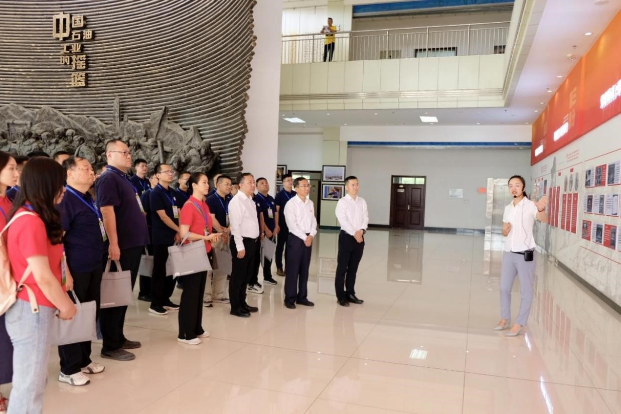 7月16日,全體學員參觀了玉門油田鐵人王進喜紀念館、“693”人防工程以及老君廟采油廠、玉門煉油廠,瞻仰了孫建初紀念碑。在鐵人王進喜紀念館中,學員們向鐵人王進喜雕像敬獻花籃,重溫入黨誓詞。在講解員引導下,培訓學員通過觀看歷史圖文、珍貴文物等方式,從苦難經歷、創業玉門、會戰大慶、心系家鄉、精神永存五個部分,詳細了解了鐵人王進喜的光輝事跡,加深了對鐵人精神認識和理解。在參觀“693”人防工程過程中,研修學員深刻體會了玉門人民為保障國家石油資源安全修建人防工程所付出的艱辛,強化了黨性意識和宗旨意識。在老君廟采油廠,學員們追尋鐵人足跡,先后參觀了老君廟一號井舊址、老君廟展覽室、西河壩窯洞舊址、企業精神教育基地603崗位,回顧了老君廟油礦的開創和光輝發展歷程,深入了解了老一輩玉門石油人“一厘錢”“窮搗鼓”“找米下鍋”“小廠辦大事”“再生產”的精神。