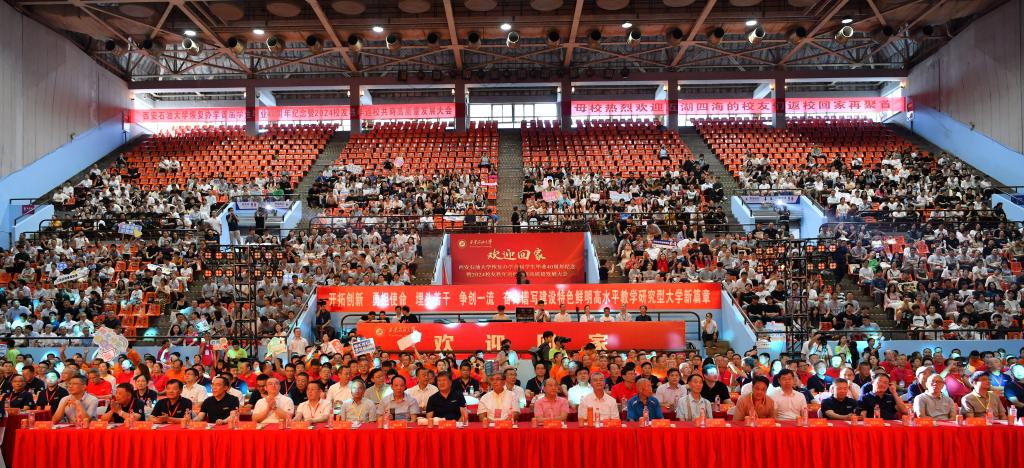 7月27日上午,學校在雁塔校區體育館隆重舉行了恢復辦學首屆學生畢業40周年紀念暨2024校友秩年返校共商高質量發展大會。學校黨政領導常江、王進富、張木、王輝強、程永清、楊戰社、張榮軍、張君濤、張驍勇、趙健、樊曉民出席會議,校友代表、校友家屬、各地校友分會負責人代表、校友企業家聯合會代表、歷任校領導代表,各職能部門和院(系)負責人、教師代表和在校生代表共計1200余人參加會議。