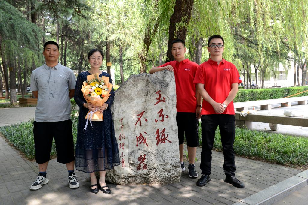 王進富向5名校友代表贈送了精心準備的“一滴油”印章紀念品,以此表達對他們長期支持學校的感激之情。