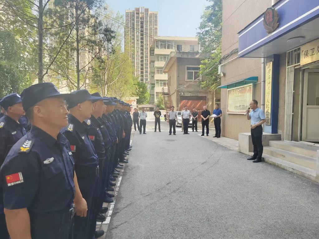 7月31日上午,我校在雁塔校區保衛部(處)辦公樓前舉行了雁塔、明德校區新中標保安公司交接儀式。副校長趙健出席活動并講話。