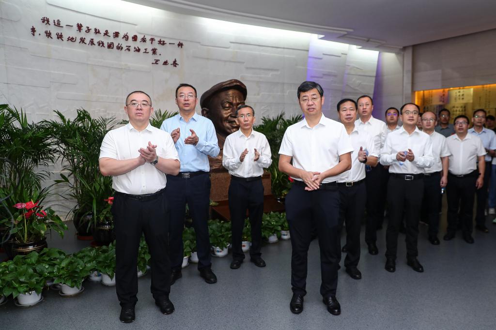 8月6日上午,常江、王進富一行參觀了大慶油田鐵人王進喜紀念館,聆聽鐵人故事講解,通過參觀銹跡斑斑的文物、鮮活的老照片、寫滿文字的筆記本等陳列品,物見鐵人本色、感受鐵人精神。大慶鉆探工程有限公司籌備組副組長、鉆探工程公司總經理艾鑫全程陪同。