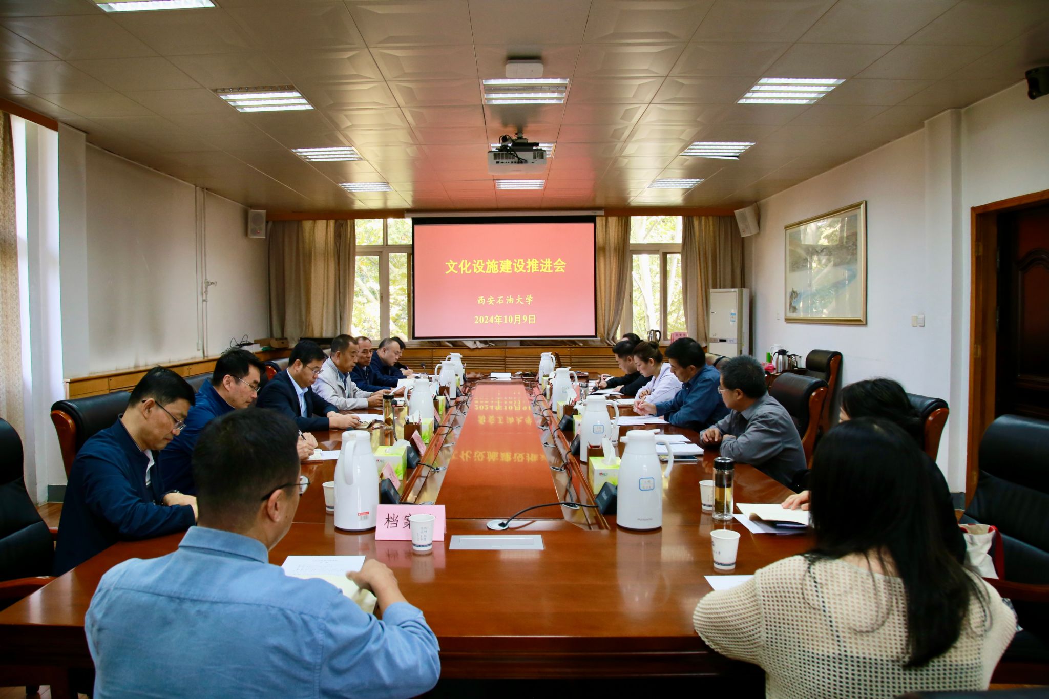 10月9日上午,學校文化設施建設推進會在雁塔校區行政樓5樓會議室召開。校長王進富出席會議,校長辦公室、黨委宣傳部、基建處、后勤處、圖書館、檔案館,人文學院、音樂系有關負責人及相關人員參加會議。會議由校黨委副書記程永清主持。