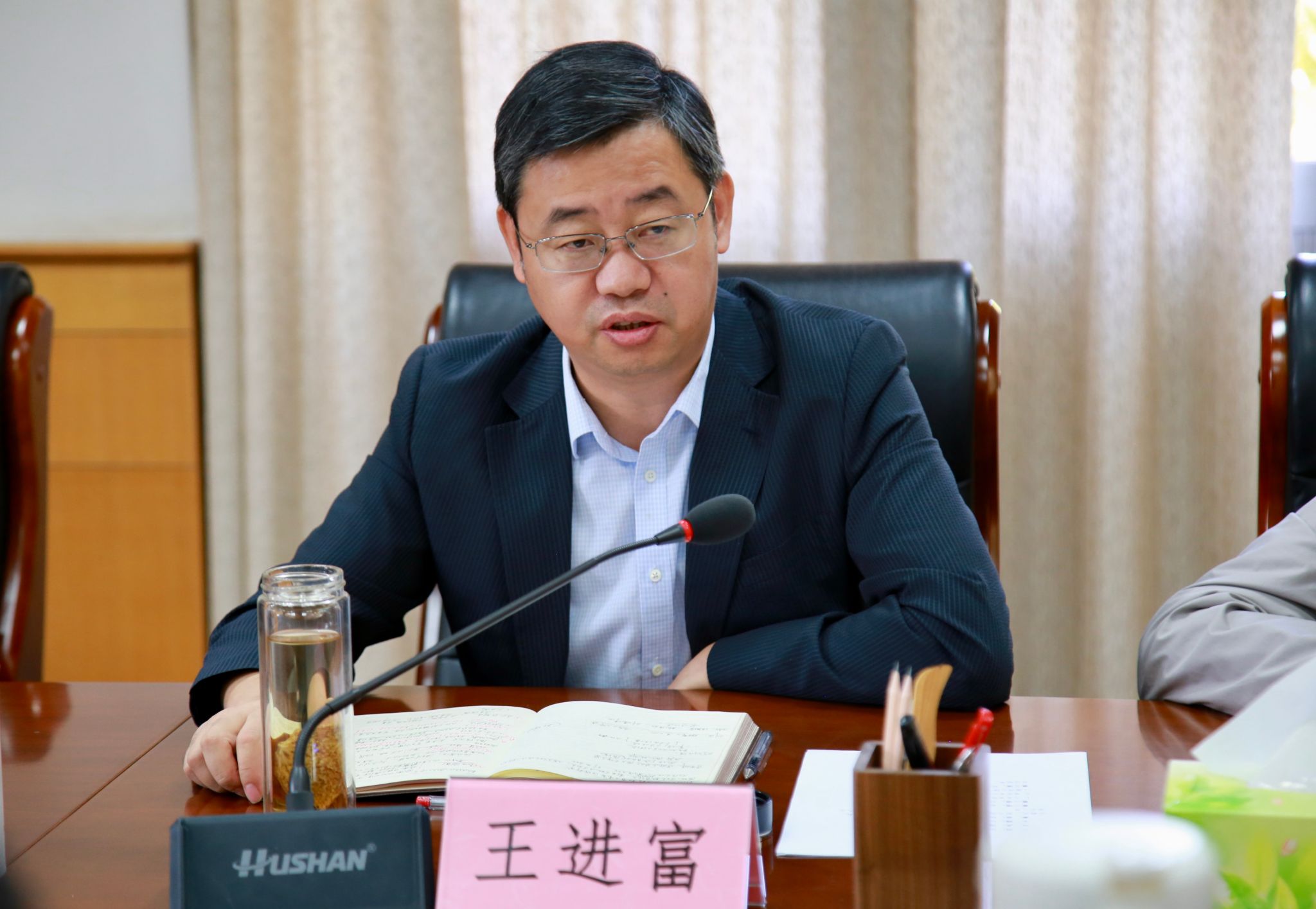 王進富在聽取有關文化設施建設工作進展匯報后,對各單位工作推進情況給予充分肯定,并表達了三點感謝:一是感謝陳忠實、趙季平兩位大師選擇與西石大結緣,為學校提供了生動的文化底色;二是感謝學校老領導的遠見,讓兩位大師有一段在學校創作、生活的經歷;三是感謝各位工作人員帶著敬畏之心投入各項挑戰性、開創性工作。他強調,校園文化是大學文化最重要、最關鍵的物質載體,加強校園文化設施建設,正是通過對校園文化中物質文化的有益補充,使學校歷史和價值追求等西石大精神文化更好地展示,包括其中蘊含著的石油精神、鐵人精神,讓廣大師生和社會公眾看得見、摸得著、感受得到,從而實現以文化人的教育意義。同時,王進富針對后續工作提出三點要求:一是高起點設計。所有物質文化都要折射出精神文化,既要立足現實,也要提升高度,主題明確、主線清晰,讓學生和社會公眾看得懂。二是高標準建設。能夠提升場館藝術水平且具有收藏價值的展品要努力爭取,裝修設計和建設標準要與高水準的藝術品質相對應。三是高品質塑造。設施建成不是最終目的,要注重設施功能可拓展性,為進一步搭建文化交流基地、學術研討平臺、藝術教育場地預留可發展空間,通過發掘更多功能讓各項文化設施保持活力。