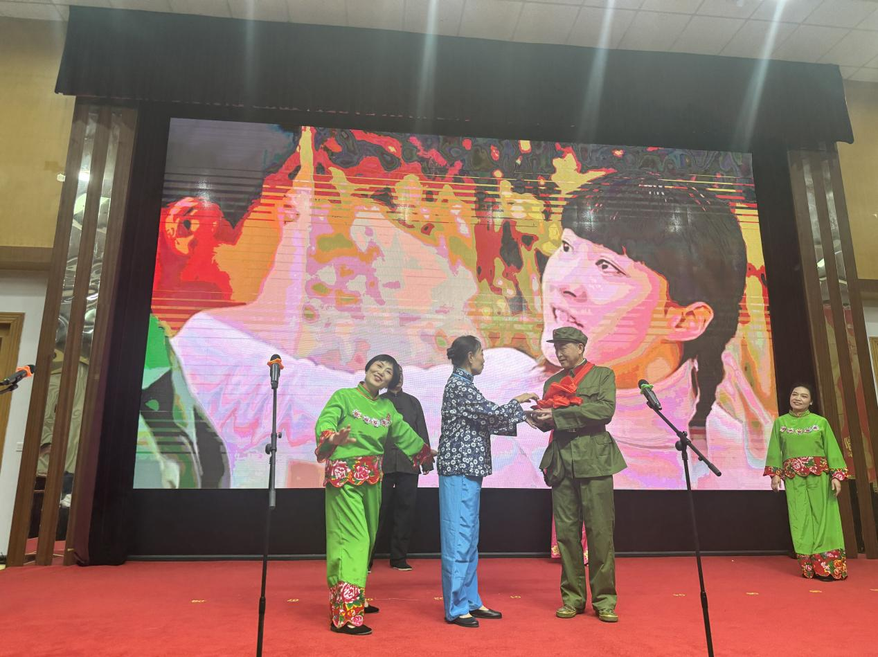 最后,領導和來賓們上臺與演職人員合影留念。大家在一片歡歌笑語聲中共同慶祝新中國成立75周年,歡度重陽節。