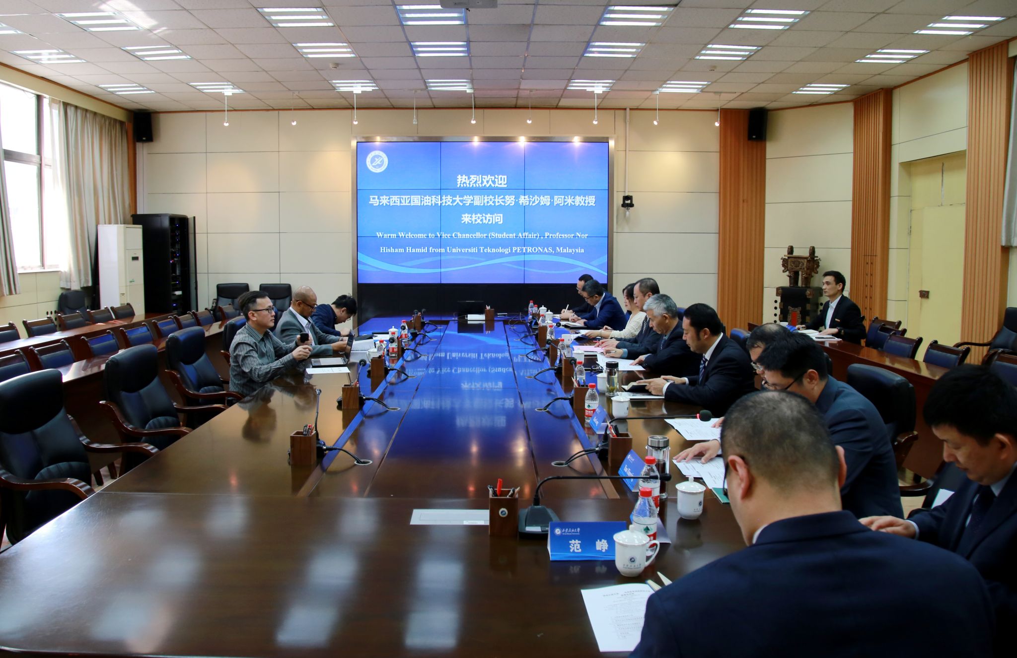 我校教務處、學生工作部(處)、科研處、國際合作與交流處(國際教育學院)及石油工程學院、地球科學與工程學院、化學化工學院、土木工程學院負責人參加座談會。雙方圍繞學生發展、短期交流項目、學歷提升項目、聯合科研項目等進行了深入交流,達成多項合作意向。座談會后,努·希沙姆·哈米德一行參觀了我校鄠邑校區鐵人王進喜紀念館、校史館。