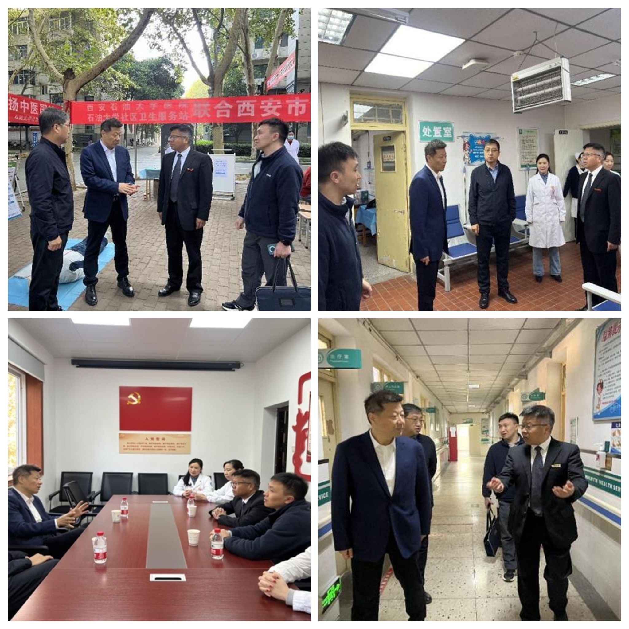 義診期間,副校長張驍勇代表學校對西安市第一醫院專家團隊的到來表示熱烈歡迎,對西安市第一醫院對學校醫療工作的支持和幫助表達了衷心感謝。隨后,在張驍勇的陪同下,馬毅一行參觀了校醫院,并在校醫院二樓會議室進行了座談,就優質醫療資源下沉、綠色通道、急救轉診、業務能力提升等醫聯體建設進行了深入交流。