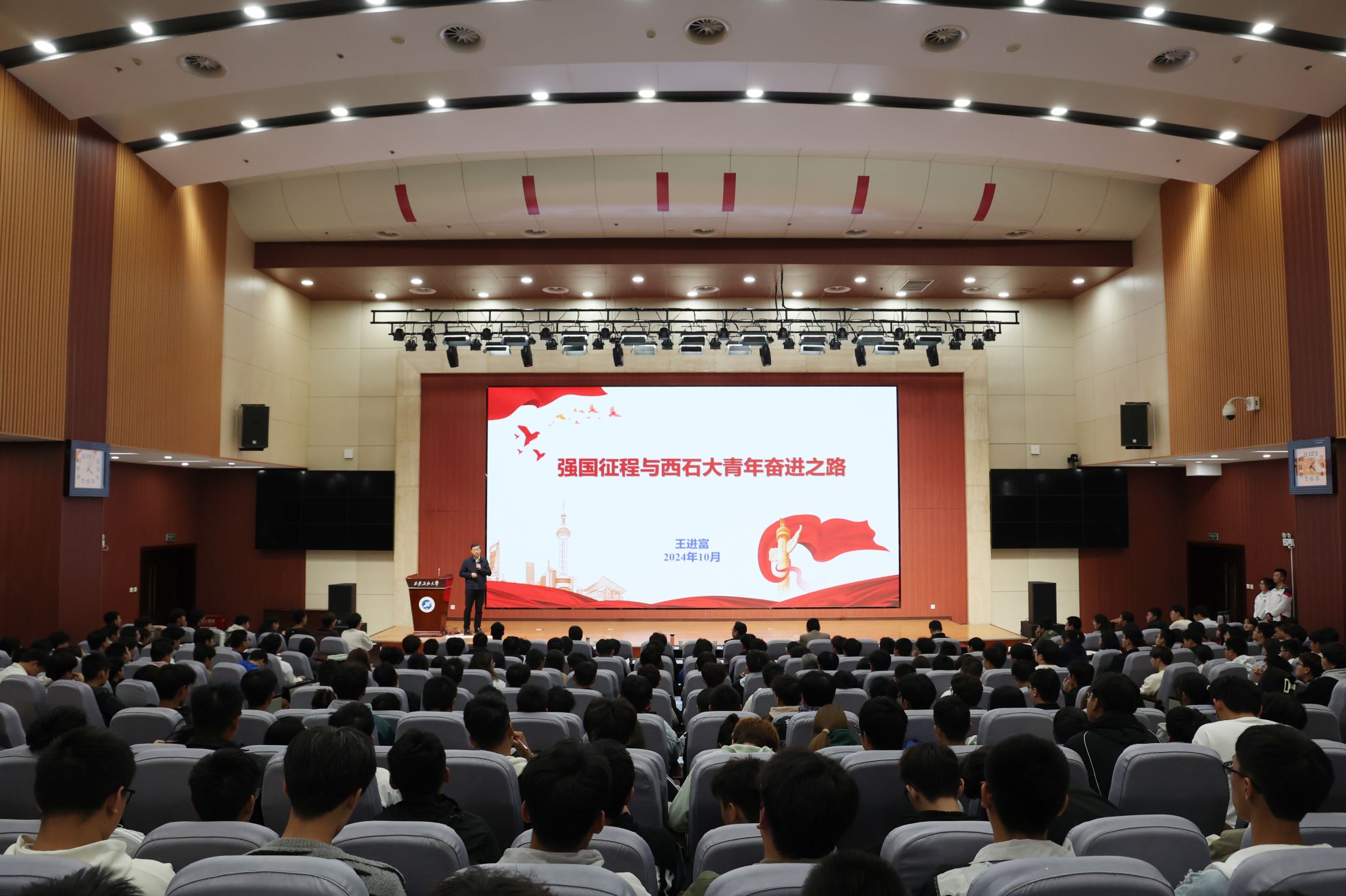 10月23日下午,校長王進富在鄠邑校區弘石報告廳為地球科學與工程學院師生講授題為“強國征程與西石大青年奮進之路”的專題思政課。地球科學與工程學院負責人、全體學工干部及400余名學生參加。