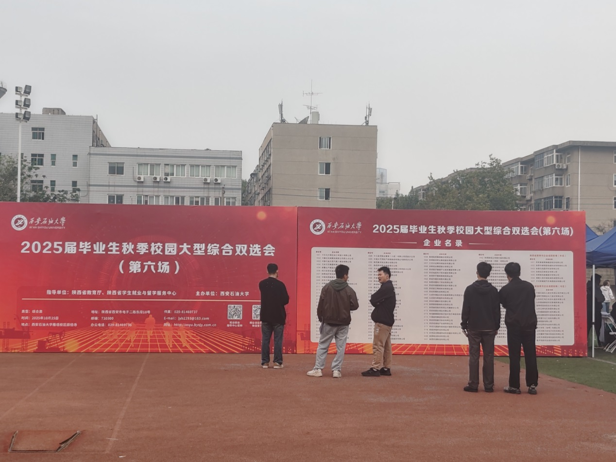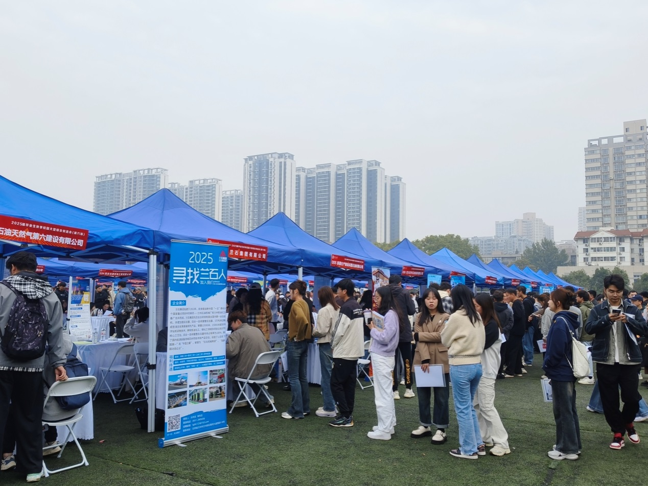 丹楓迎秋,金風送爽。10月25日上午,我校在雁塔校區田徑場舉辦最后一場2025屆畢業生秋季校園招聘綜合雙選會。來自全國中石化中原石油工程設計有限公司、中國石油天然氣第六建設有限公司、新疆生產建設兵團石油有限公司、中煤陜西能源化工集團有限公司、陜西建工鐵建工程有限公司、陜西地礦物化探隊有限公司、西安秦華燃氣集團有限公司、齊魯理工學院、堯柏特種水泥集團有限公司,淄博市人社局組團、渭南市人社局組團的省內外共計150余家企事業單位進校招聘,行業領域覆蓋我校所有專業設置。來自我校及兄弟院校的3800余名本科生、研究生參加應聘。