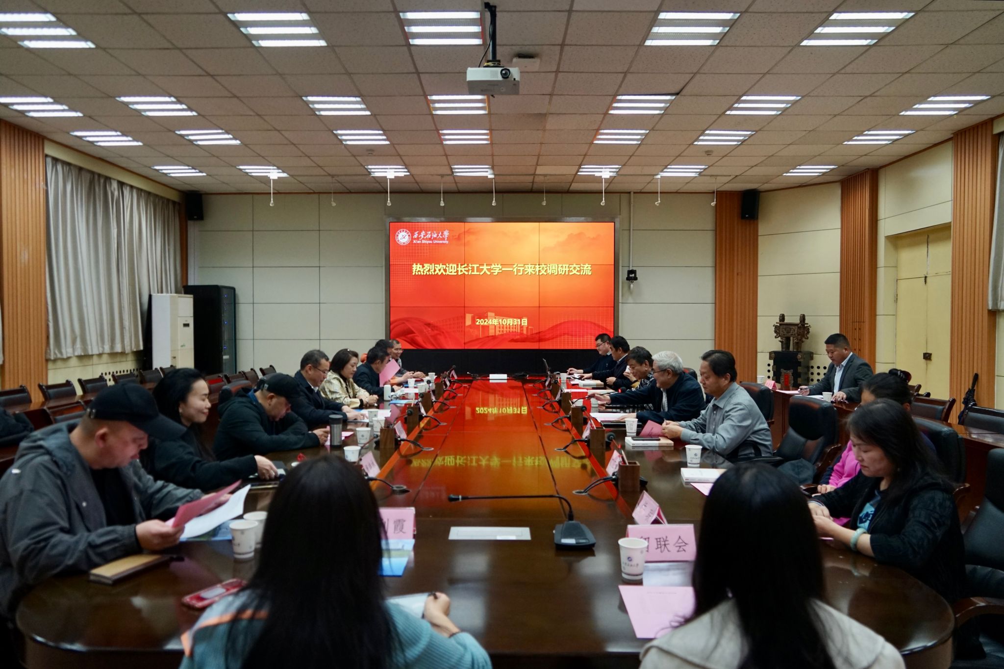 10月31日下午,長江大學黨委統戰部常務副部長王勇帶隊,長江大學黨委統戰部及各民主黨派、統戰團體負責人一行9人,來我校調研交流,在雁塔校區會議中心第二會議室舉辦調研交流座談會。會前,校黨委副書記張木會見了王勇一行,并就加強黨外知識分子思想政治引領、民主黨派基層組織建設等工作進行了交流。學校各民主黨派、無黨派人士、僑聯、知聯會、留聯會負責人參加座談會。