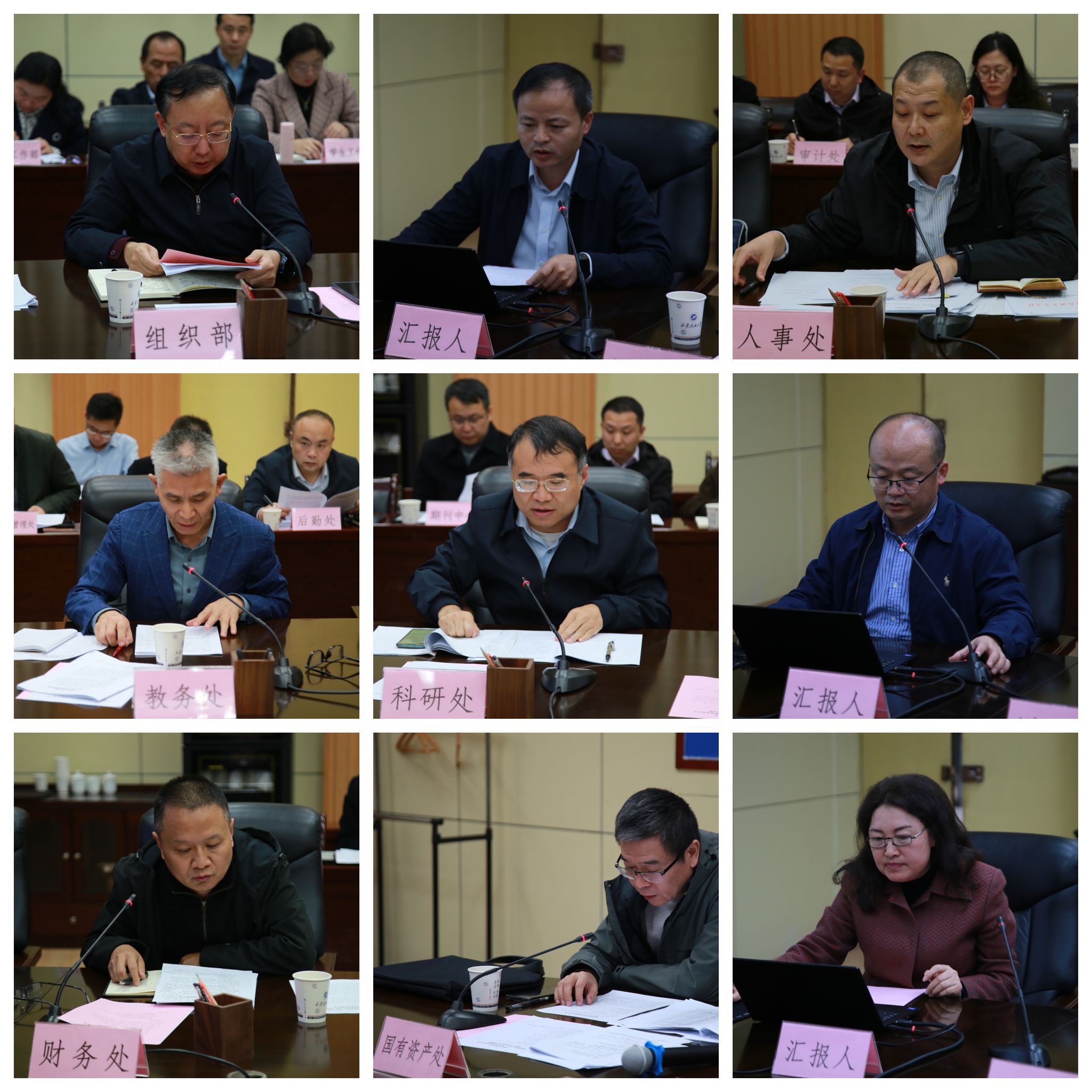 黨委辦公室(校長辦公室)、組織部、宣傳部、學生工作部、教師工作部、發展規劃處、人事處、教務處、實驗室管理處、科研處、研究生院、研究生工作部、信息化建設與管理處、財務處、審計處、國有資產處、后勤處、圖書館、期刊中心等單位主要負責人參加會議。