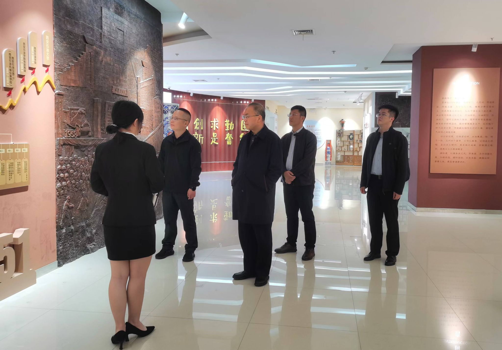 會上,我校就共青團工作進行了匯報,贈送了紀念品,雙方進行了深入交流。會前,丁林一行參觀了我校鐵人館和校史館。