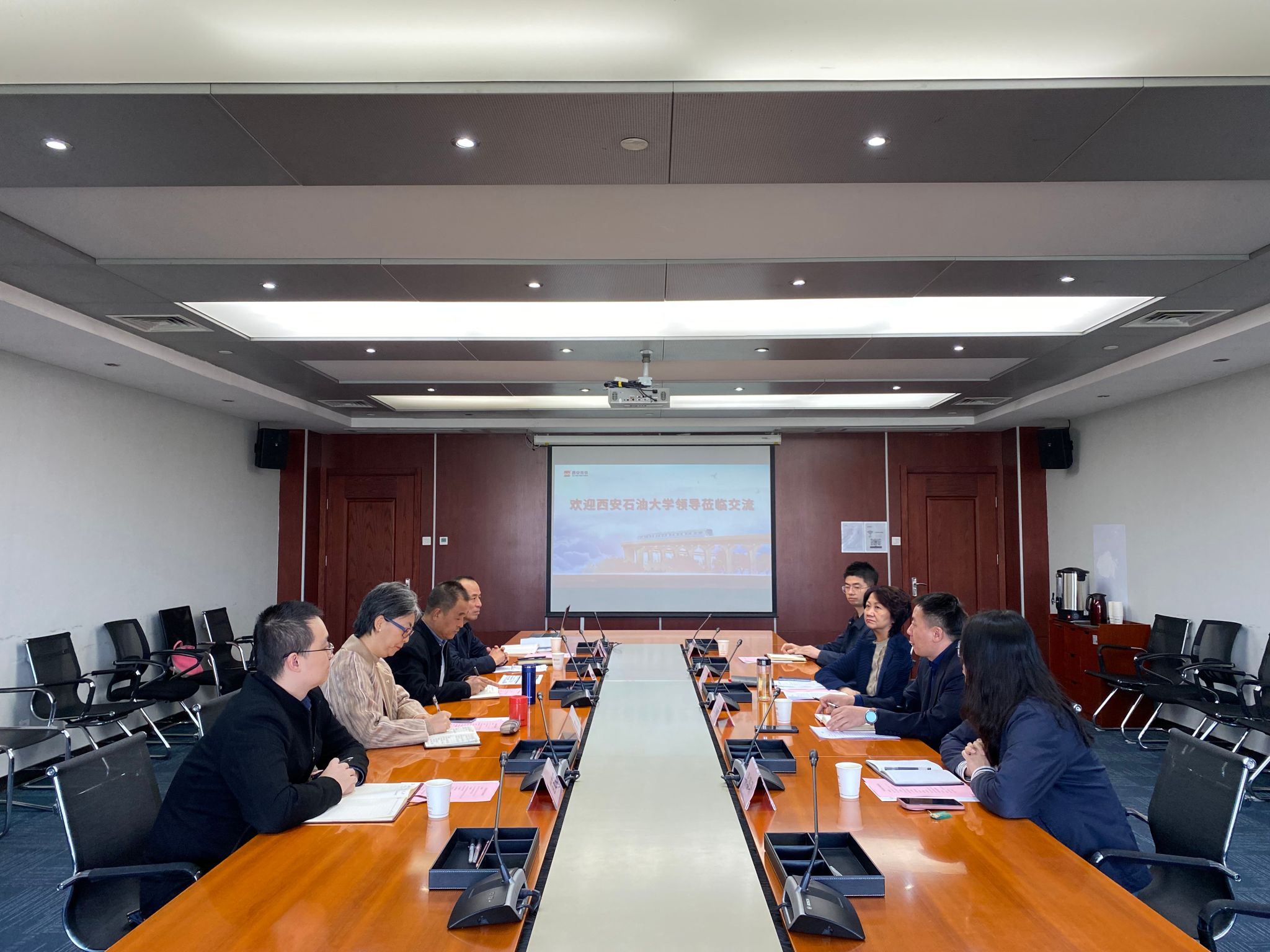 陳紅對程永清一行來訪表示熱烈歡迎,并介紹了公司的基本概況、主營業務和企業文化建設情況。她表示,今年6月校企雙方已在“城市記憶·地鐵遇見畢業季”大學生畢業作品展活動中建立了深厚的合作基礎,活動反響熱烈,石油學子的藝術節目和專業作品令人印象深刻。她強調,西安軌道交通集團歷來重視與西安高校合作,其中以地鐵為平臺、依托文化長廊,聯合高校展示科技創新和文化特色是近年新穎的策展方式,讓市民游客在穿梭的地鐵中可以感受城市歷史文化底蘊,有著獨特的策展思路和優勢。西安石油大學辦學特色鮮明,始終堅持服務國家能源戰略需求和陜西經濟社會發展,取得了一系列引人注目的發展成就,集團將全力支持本次合作,希望雙方借此機會能進一步加強文化交流、合力打造具有城市特色的文化品牌矩陣,為全省加快構建支撐有力的文化建設體系、推進文化自信自強提供有力支撐。