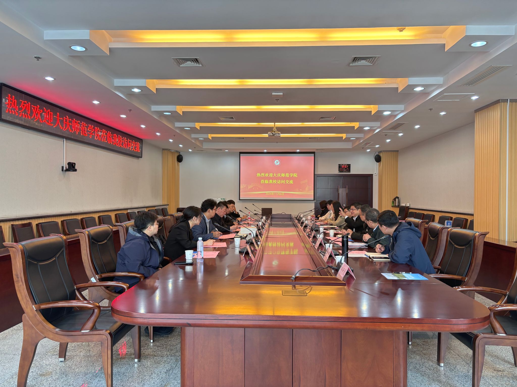 許雙毅對我校的熱情接待表示衷心感謝,并介紹了大慶師范學院的發展歷程和建設成果。他指出,大慶師范學院與我校都因油而生、因油而興,有著深厚的行業背景和廣闊的合作前景。他表示,此次調研交流旨在學習借鑒我校在教育發展中的先進經驗和做法,加強兩校之間的合作與交流,希望雙方未來在鐵人精神研究、課程思政、學科建設等方面展開深度合作,進一步實現資源共享和聯合研究,共同助力雙方事業發展。