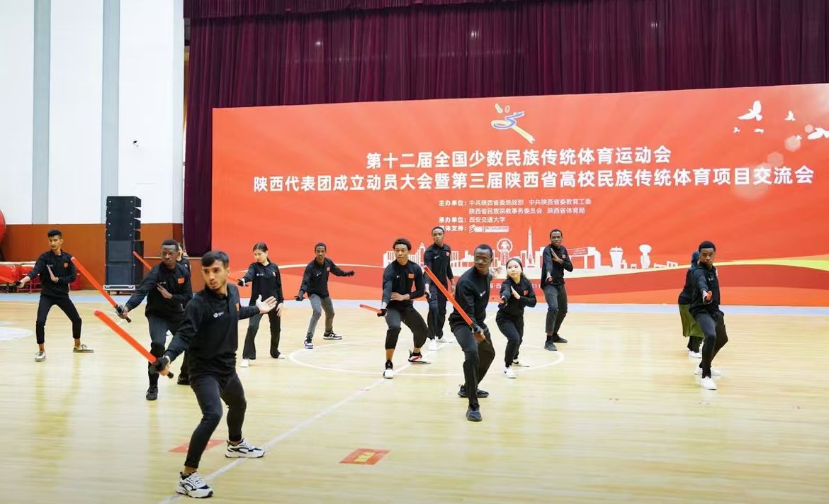 11月9日,由中共陜西省委統戰部、中共陜西省委教育工委、陜西省民族宗教事務委員會、陜西省體育局聯合主辦的第十二屆全國少數民族傳統體育運動會陜西代表團成立動員大會暨第三屆陜西省高校民族傳統體育項目交流會在西安交通大學興慶校區思源活動中心圓滿落幕。我校選送參賽的民族傳統體育項目《劍舞三秦,心融四海》榮獲二等獎。