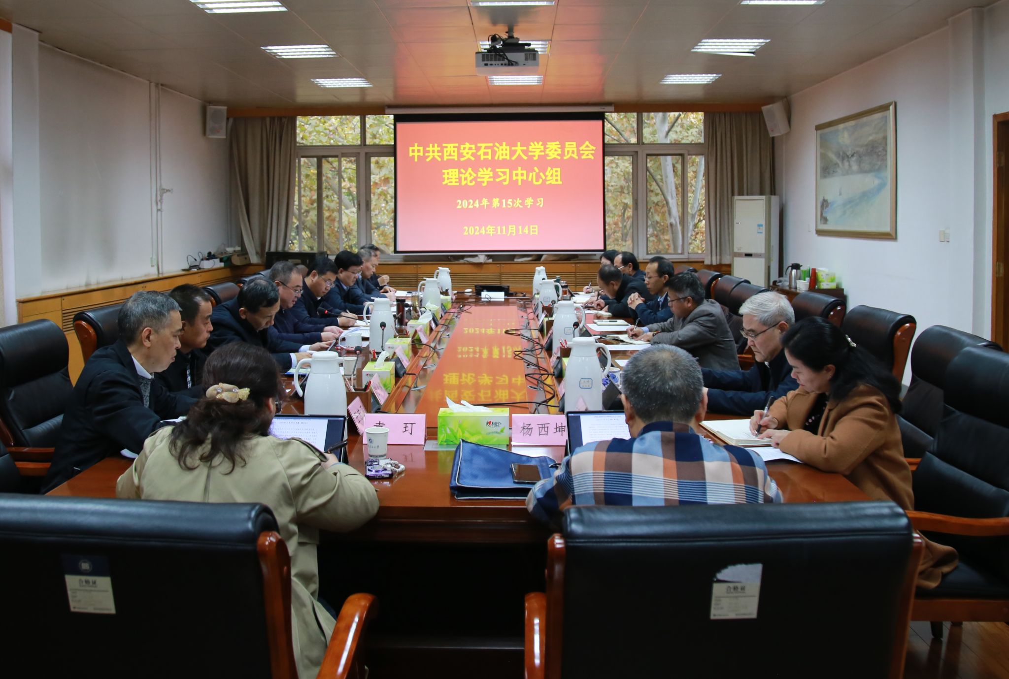 11月14日下午,校黨委理論學習中心組第15次學習會在雁塔校區行政樓五樓會議室召開,深入學習貫徹黨的二十屆三中全會精神。會議認真學習了習近平總書記在省部級主要領導干部學習貫徹黨的二十屆三中全會精神專題研討班開班式上的重要講話精神,習近平總書記在中央政治局第十七次集體學習時,在全國民族團結進步表彰大會上,在福建、安徽、湖北考察時的重要講話精神,給中國海洋大學全體師生的回信,在《求是》雜志上發表的重要文章《促進高質量充分就業》和習近平同志《論教育》《習近平關于人才工作論述摘編》。校黨委書記常江主持并講話,校黨政領導王進富、張木、王輝強、程永清、張君濤、張驍勇、趙健、樊曉民,校黨委理論學習中心組成員參加會議。