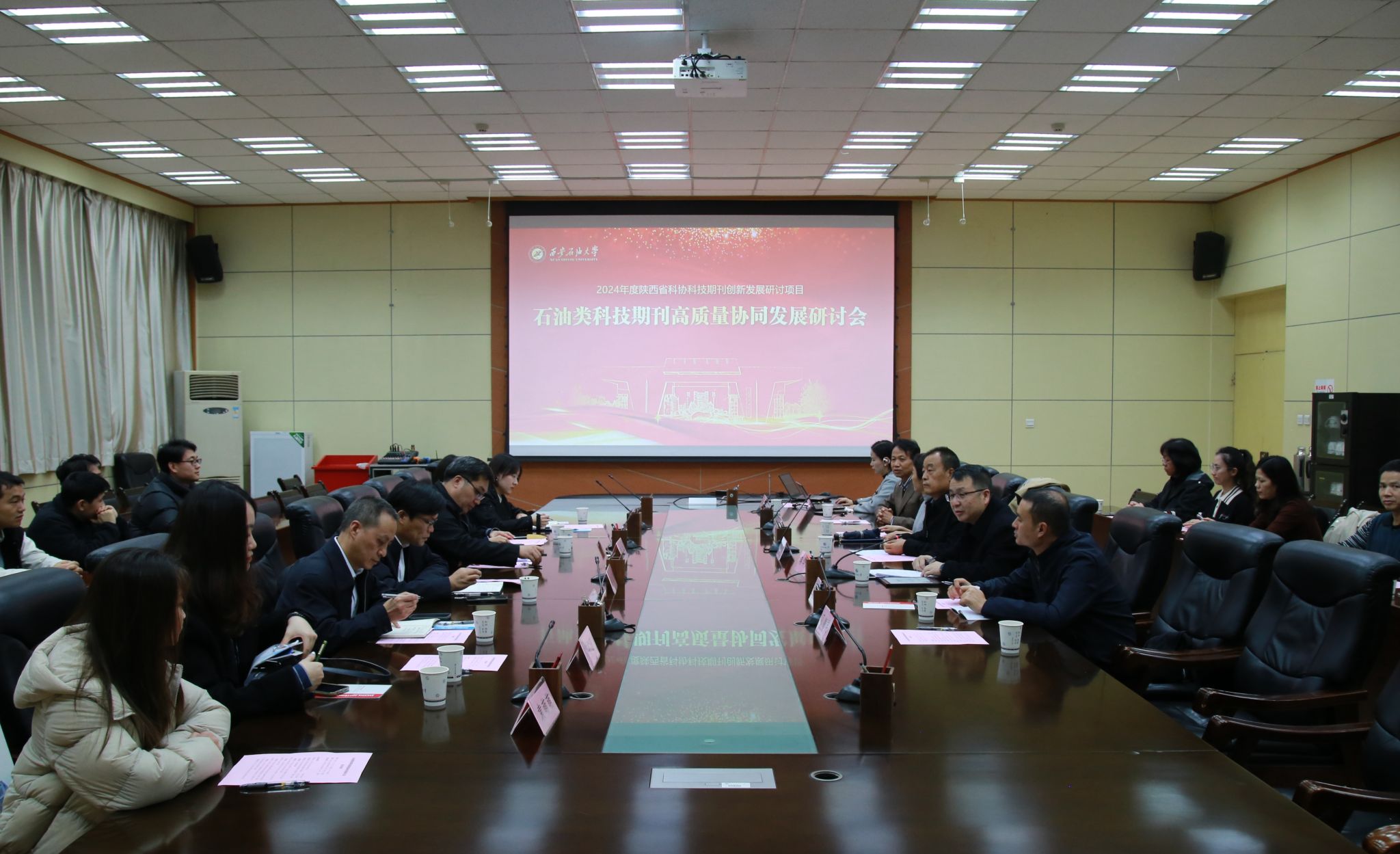 11月15日下午,由陜西省科學技術協會、陜西省科技期刊編輯學會、陜西省高等學校學報研究會聯合指導,西安石油大學主辦、西安石油大學期刊中心承辦的石油類科技期刊高質量協同發展研討會在我校雁塔校區會議中心第一會議室召開。校黨委副書記程永清,陜西省科學技術協會學會學術部調研員何帥、陜西省高等學校學報研究會理事長芮海田以及部分省內外期刊單位負責人、編輯代表應邀出席會議。我校科研處相關負責人、期刊中心負責人及全體編輯、學生代表近50人參加會議。