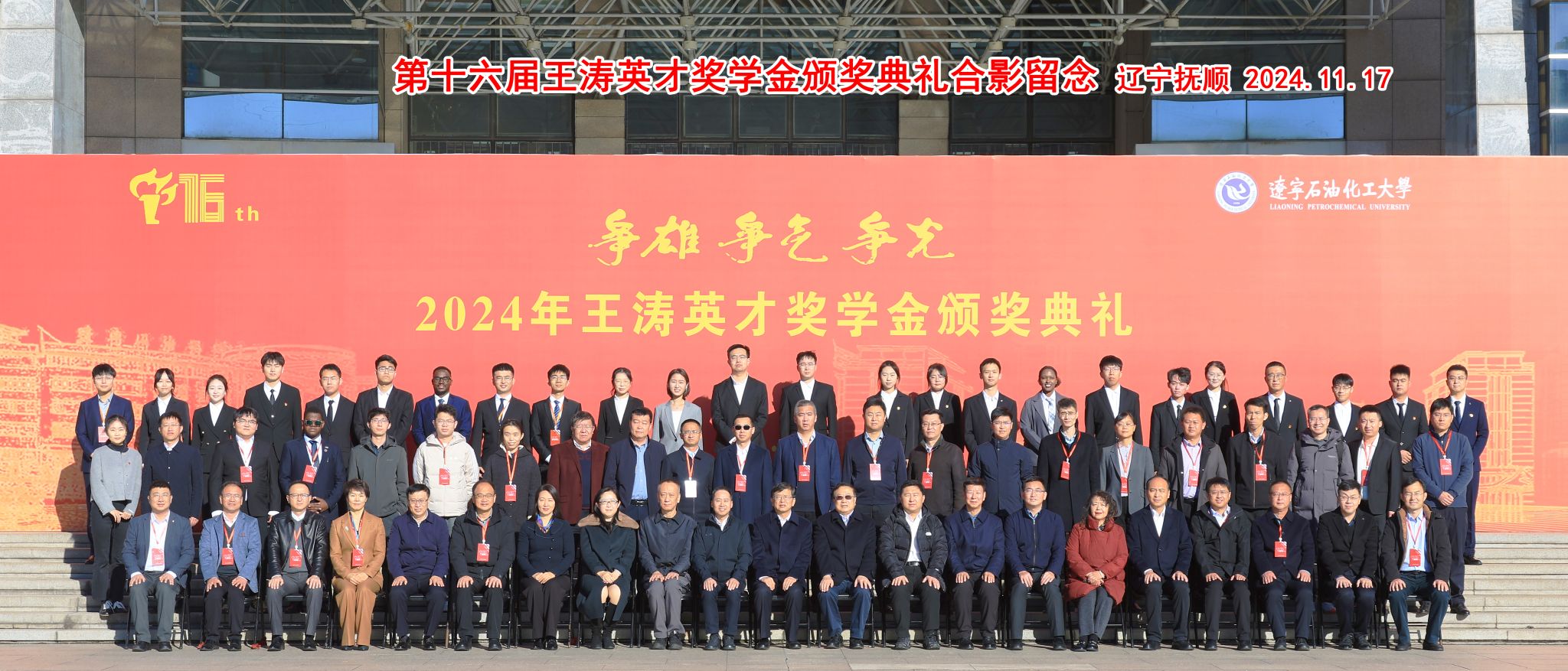 11月17日第十六屆王濤英才獎學金頒獎典禮暨“夢之隊”優秀代表報告會在遼寧石油化工大學舉行。我校石油工程學院碩士研究生曹清寒、材料科學與工程學院本科生徐劍作為第十六屆王濤英才獎學金獲獎學生參加頒獎典禮。我校副校長趙健應邀出席活動,學生工作部(處)、相關學院學生工作負責人陪同參加活動。