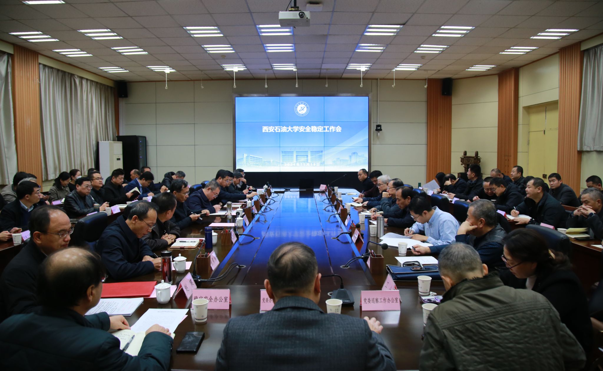 11月19日下午,學校在雁塔校區會議中心第二會議室召開安全穩定工作會議,鄠邑校區圖書館第一會議室設立分會場。學校黨政領導常江、王進富、張木、王輝強、程永清、楊戰社、張君濤、張驍勇、趙健出席會議,機關、科研、教輔及附屬單位主要負責人、各院(系)書記、副書記參加會議。會議由校長王進富主持。
