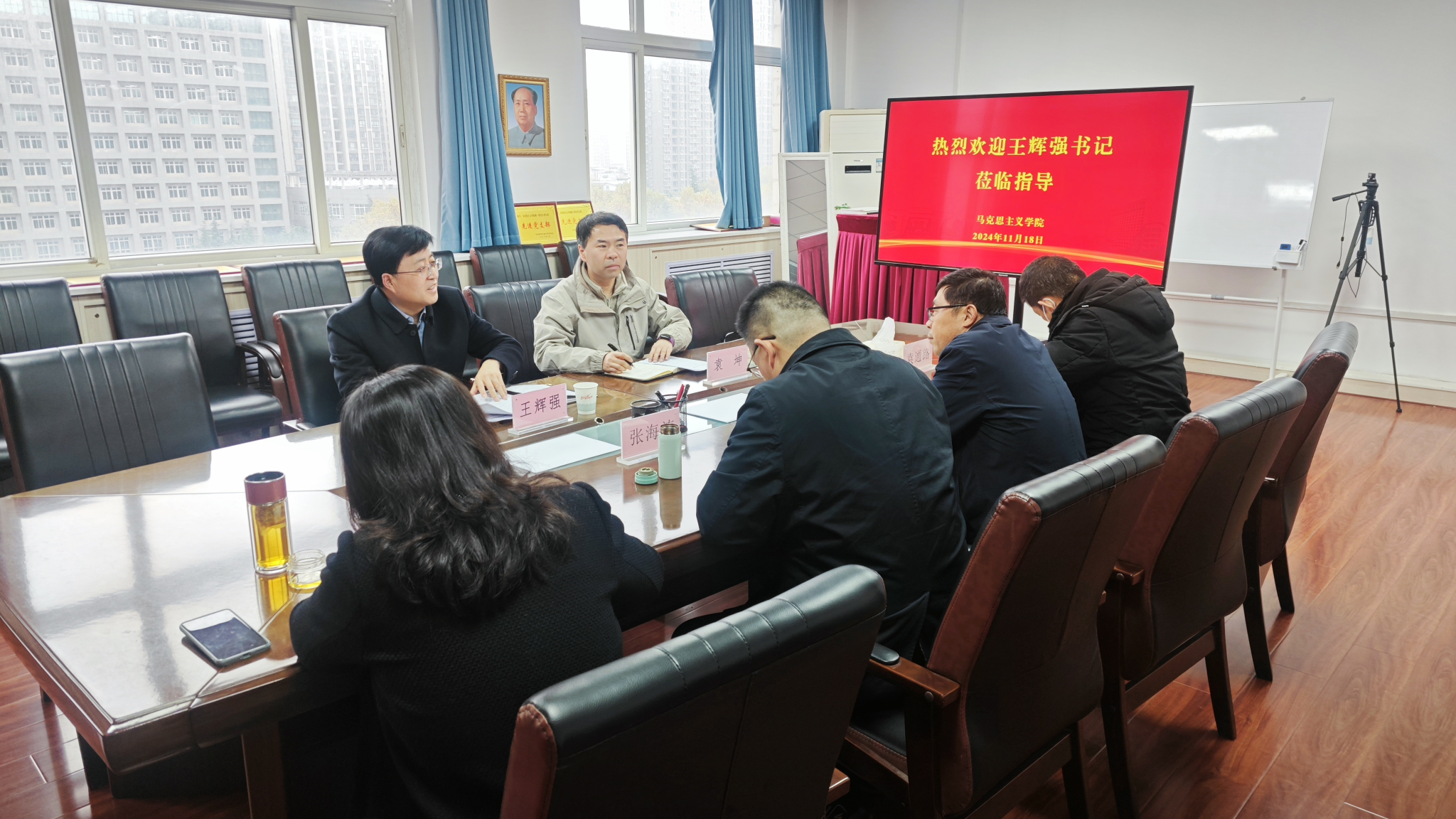 為推動學習貫徹落實習近平總書記關于思政課建設的重要指示精神,11月18日下午,校黨委副書記、紀委書記、監察專員王輝強一行到馬克思主義學院開展思政課建設專題調研監督。馬克思主義學院班子成員和教師代表、紀委綜合室負責人參加調研監督座談會。