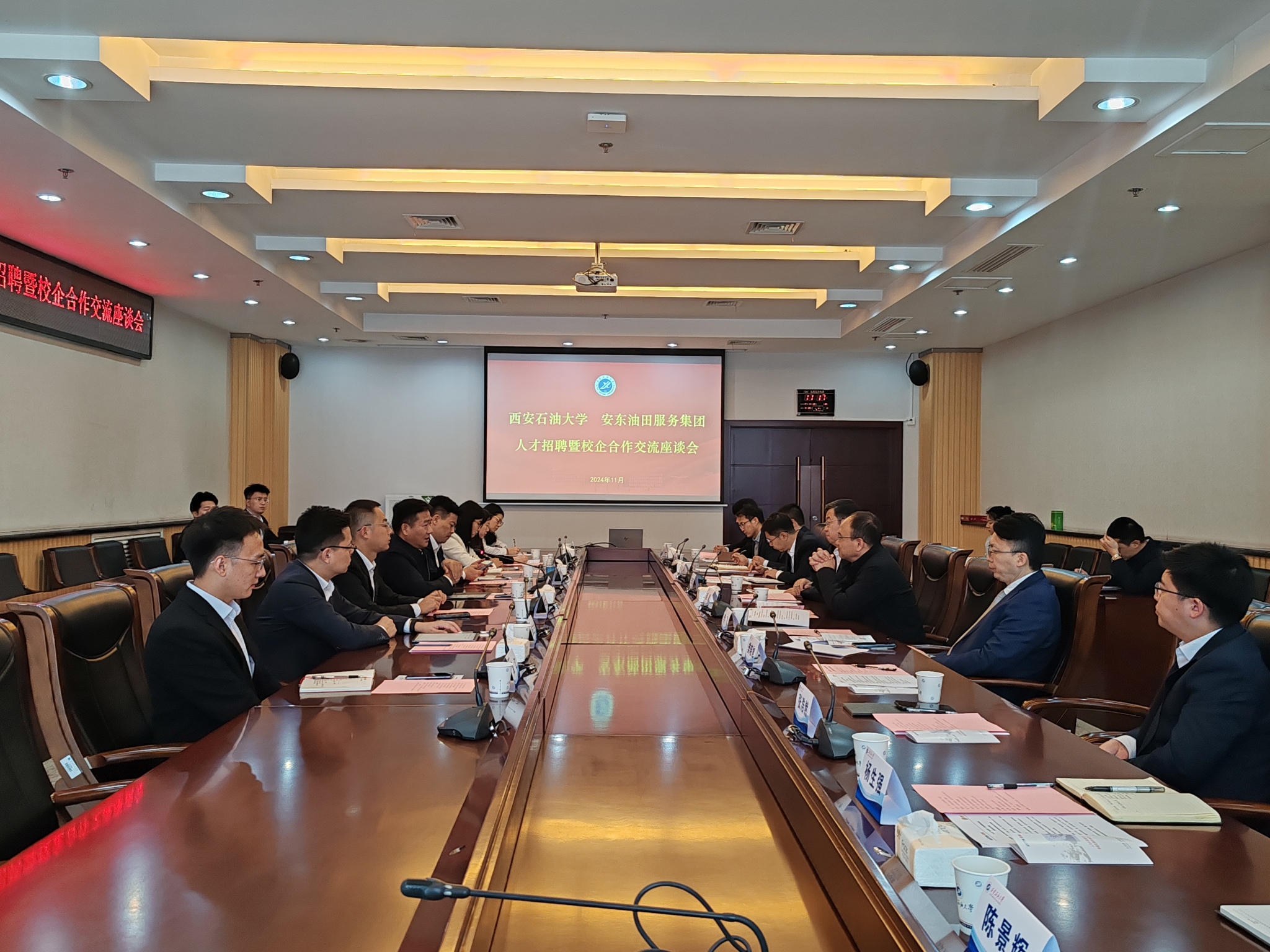 11月22日,我校與安東油田服務集團在鄠邑校區第二會議室舉行人才招聘暨校企合作交流座談會。安東油田服務集團執行副總裁兼安東石油技術集團董事長劉國慶、西安石油大學校長王進富出席會議。學生工作處(就業創業指導中心)、科研處、石油工程學院、電子工程學院、計算機學院、經濟管理學院相關負責同志參加會議。會議由副校長趙健主持。