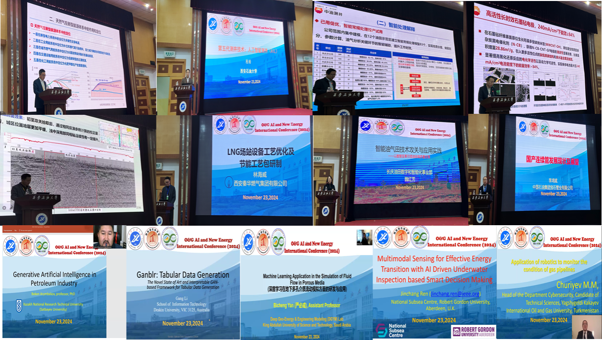 在會議交流階段,2024油氣AI與新能源國際會議以“油氣AI科技創新,能源共謀綠色發展”為主題,特邀來自中國、英國、澳大利亞、沙特阿拉伯、哈薩克斯坦、土庫曼斯坦等國家的13位知名專家學者,通過線下、線上,圍繞AI在油氣勘探、測井、地震、管道工程、地面工程、工程材料研究中的應用以及地熱、光伏、儲能等新能源領域做了精彩的學術報告,吸引了校內外200余名師生參加,為理解油氣AI與新能源技術現狀和發展趨勢提供了寶貴機會。