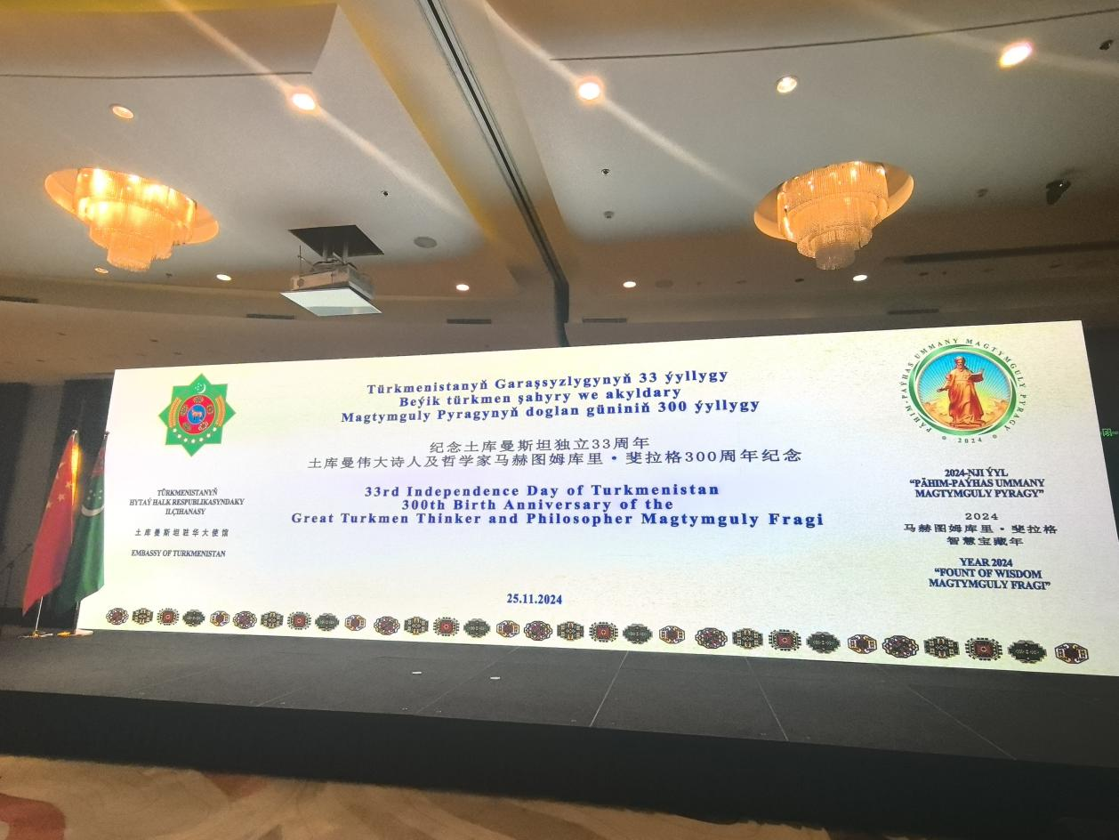 11月25日,土庫曼斯坦駐華使館在北京舉辦慶祝土庫曼斯坦獨立33周年暨馬赫圖姆庫里誕辰300周年招待會。