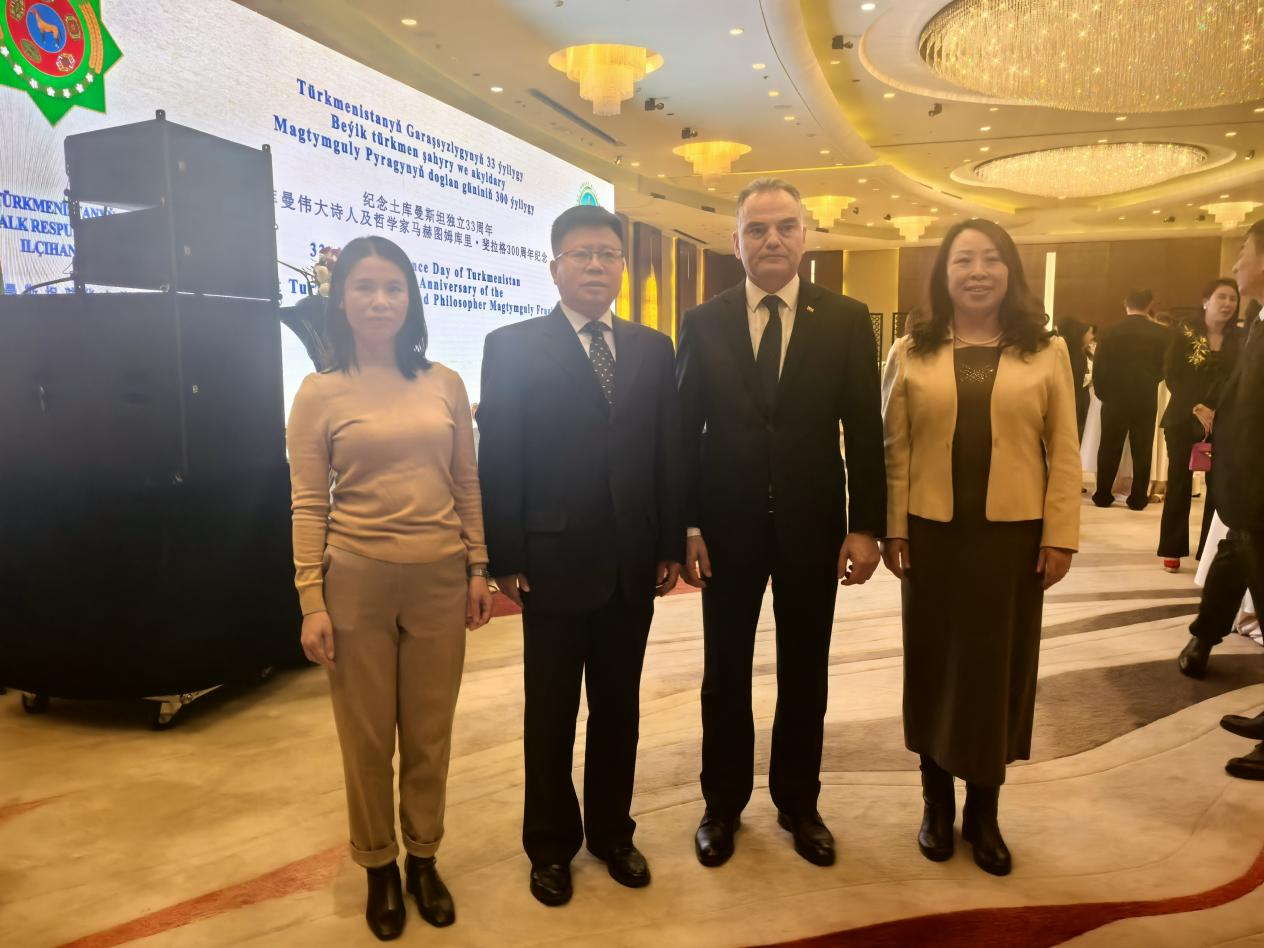 中國外交部部長助理劉彬出席招待會并致辭。劉彬積極評價土獨立以來取得的發展成就,表示在兩國最高領導人的戰略引領下,中土政治互信不斷加深,務實合作成果豐碩,不僅推動了兩國經濟社會發展,也造福了整個中亞地區。中方支持土方舉辦紀念馬赫圖姆庫里誕辰300周年系列活動,愿同土方進一步加強文化交流,增進民心相通。