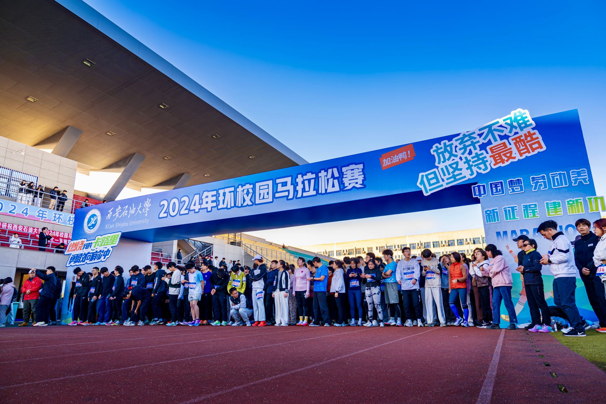 本次馬拉松賽由西安石油大學校體育運動委員會主辦,體育學院、校工會承辦,比賽采用環形賽道形式進行,整圈環校距離約為5公里。比賽分為學生組和教職工組,1610余名學生和80余名教師共同奔跑在冬日的校園,在賽道上揮灑汗水,感受運動的魅力,體會堅持的力量。