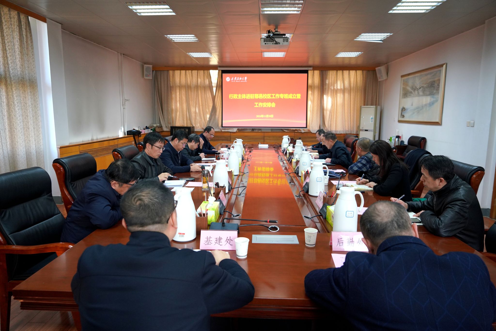 11月28日上午,我校行政主體進駐鄠邑校區工作專班成立暨工作安排會在雁塔校區辦公樓五樓會議室召開,校長王進富,副校長楊戰社、蘇文甫、趙健,總會計師樊曉民出席會議。會議由副校長趙健主持。