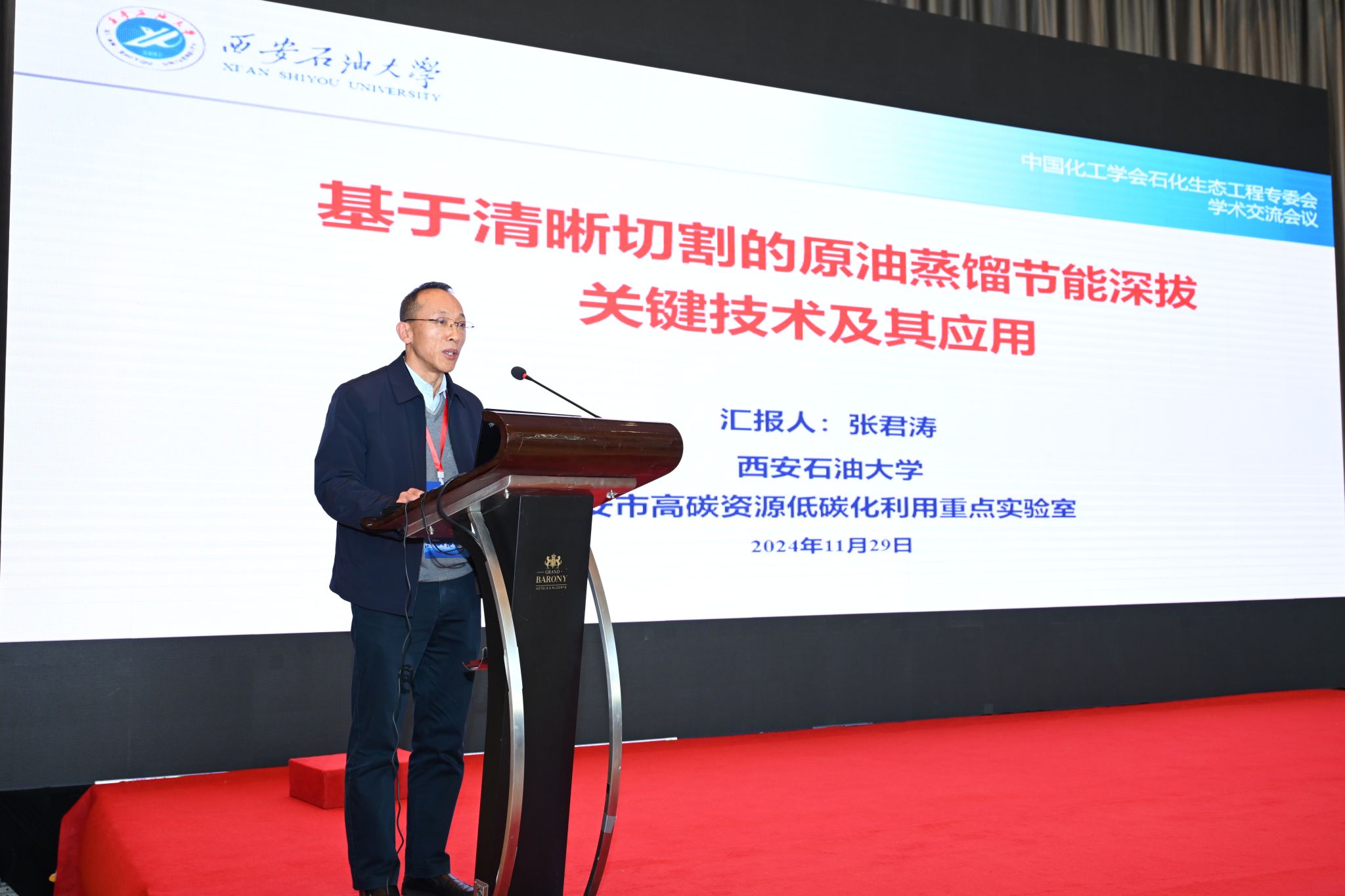 張君濤當選專委會第二屆委員會副主任委員,并應邀作了題為“基于清晰切割的原油蒸餾節能深拔關鍵技術及其應用”的學術報告。