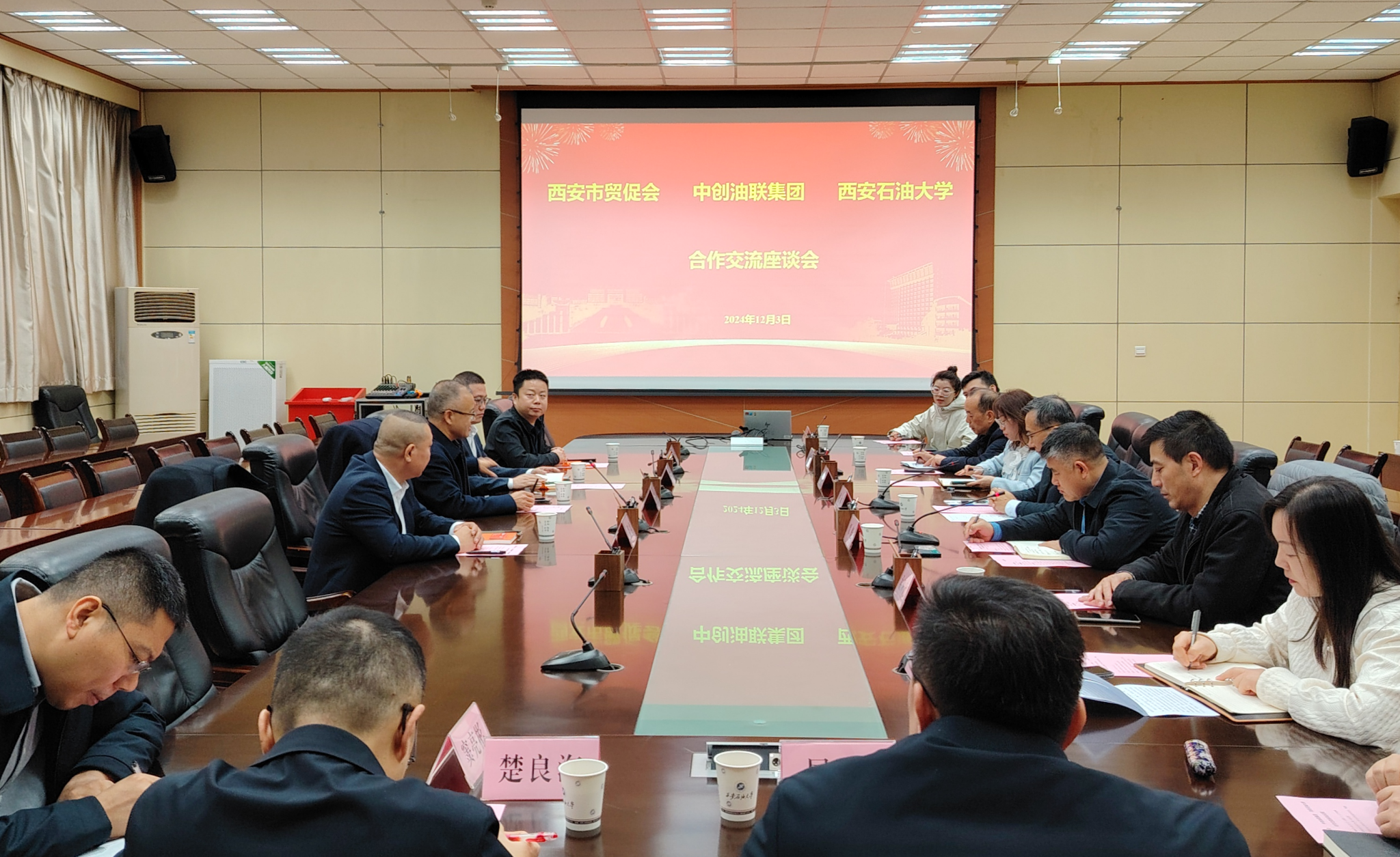 12月3日上午,西安市貿促會一級調研員馮武剛、中創油聯集團董事長林曉飛一行來校洽談合作。校黨委副書記張木出席座談會并講話。