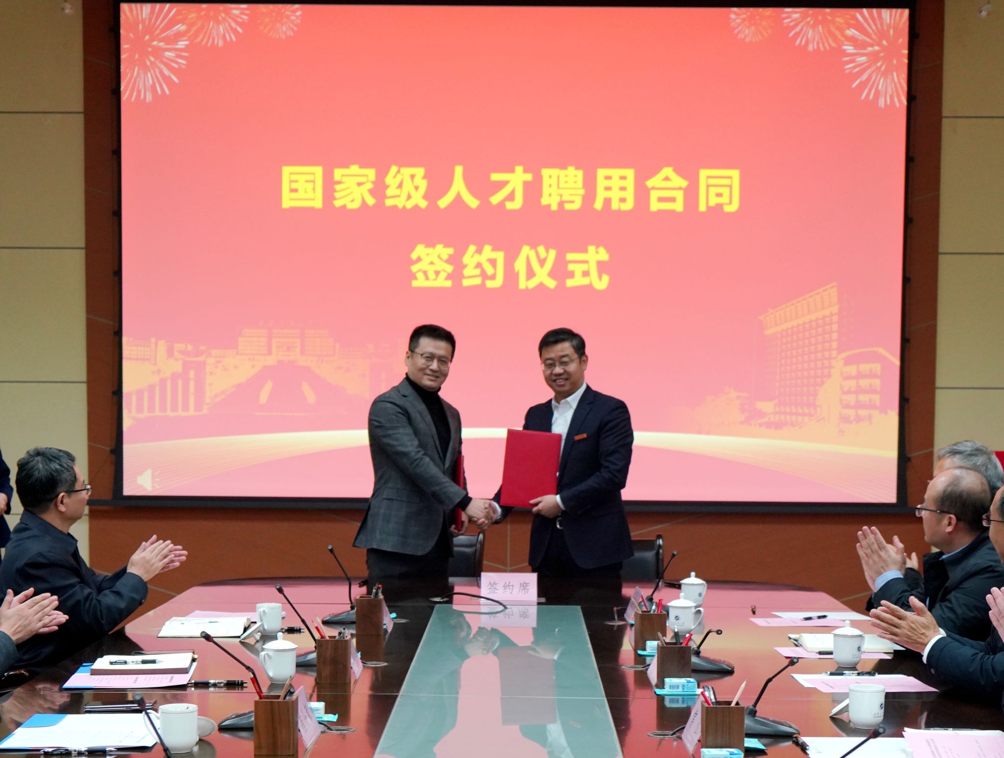 王進富代表學校與崔仕章教授簽定了聘用合同。