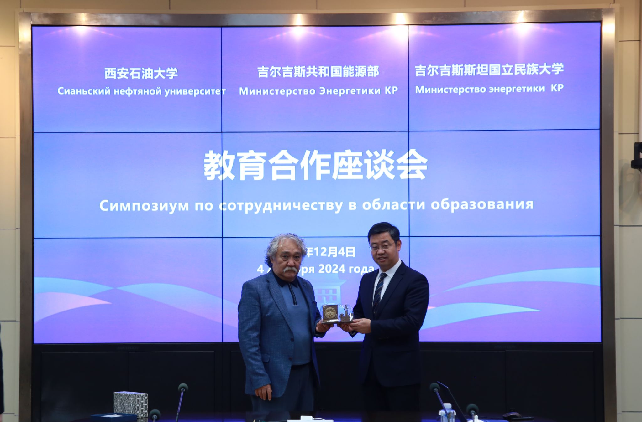 巴克特·巴克塔耶夫對學校的熱情接待表示感謝,并對學校國際化辦學成就給予了高度評價。他簡要介紹了吉爾吉斯斯坦能源建設情況,表示希望積極推動加強與西安石油大學在水電等能源建設方面的學術交流、人才培養和科研合作。同時,他邀請我校師生前往吉爾吉斯斯坦訪問和交流,進一步增進彼此了解和友誼。